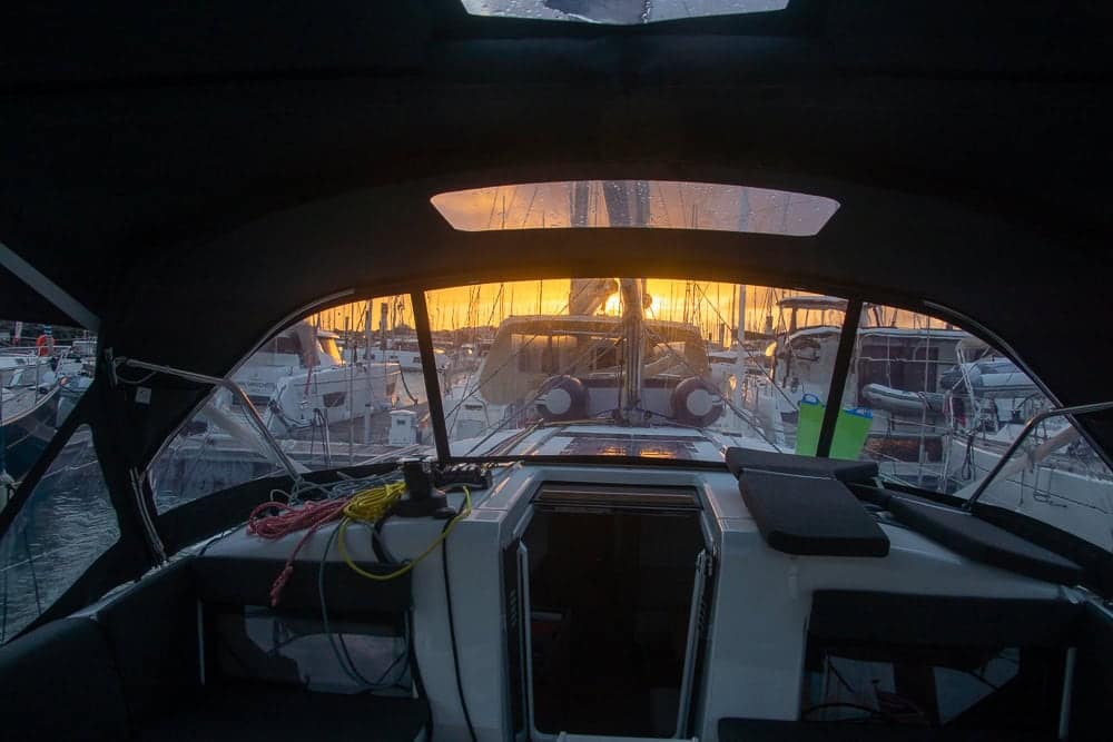 ……. set off just as the sun was rising above the masts in the marina.