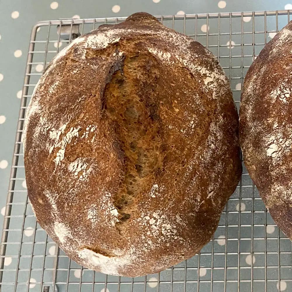 “Well, well, well! Sue’s got herself a fan-favorite bread, folks! And we’re not just baking one loaf, oh no – we’re delivering two! That’s right – double the bread, double the fun. And let me tell you, after reading about the insane amount of salt in pizzas today, I’m side-eyeing these recipes a bit. Apparently, chowing down on half a loaf of this bread is basically hitting your daily salt limit. Is this bread just secretly pizza bread in disguise? Who knows! But one thing’s for sure, we might need to lay off the salt a bit. I mean, even I can see that doubling the usual amount for the sourdough recipe is…a lot. I might just have to do a bit of experimenting in the kitchen and see if we can’t cut that salt in half. But hey, no one said baking was an exact science, right?“