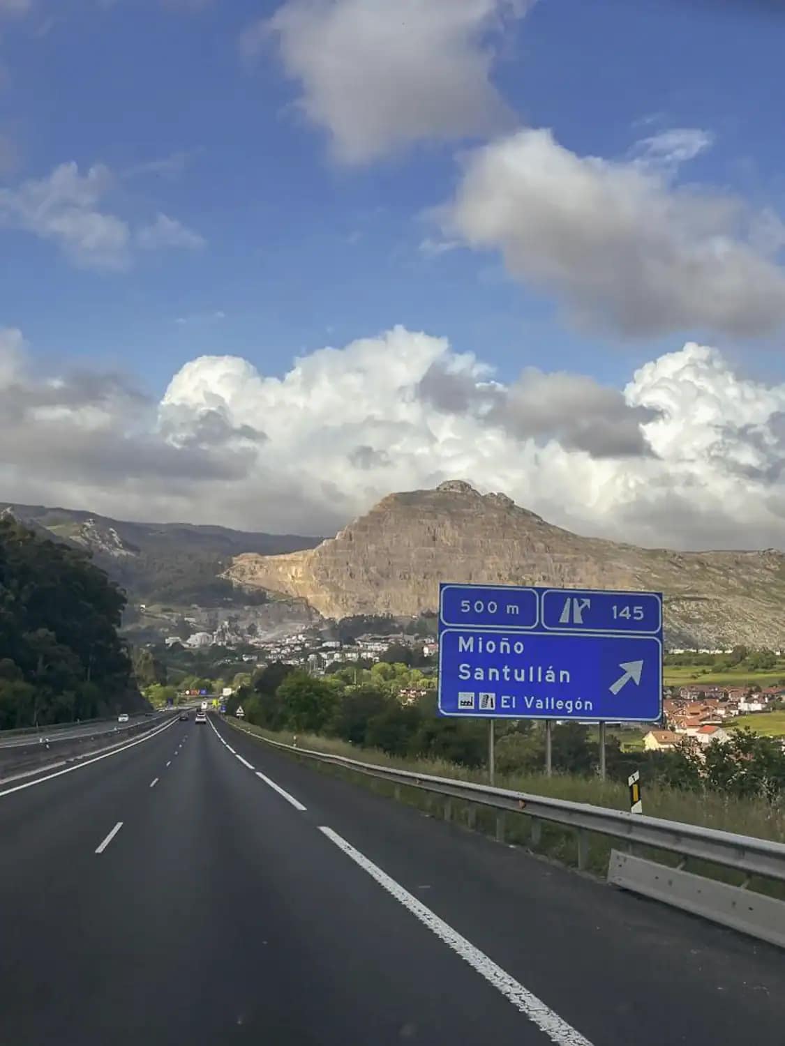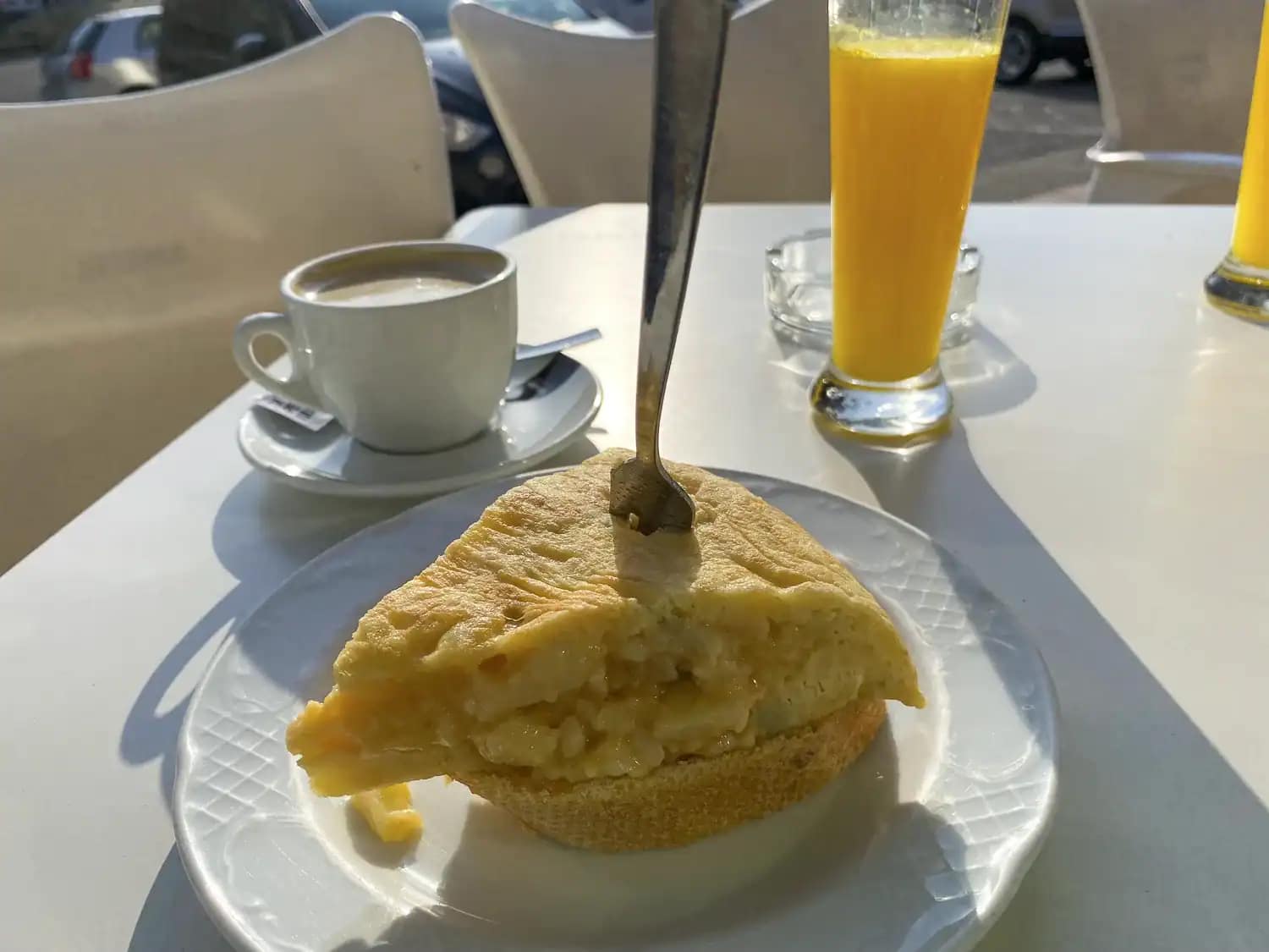 After a bit of a wait for disembarkation we drive off on into Spain. We stopped nearby at a roadside café for a Spanish breakfast, which was still-warm tortilla for Dave and a lomo sandwich for me, both served with freshly squeezed orange juice, good coffee and with Spanish local chatter in the background. A nice contrast to the ferry!