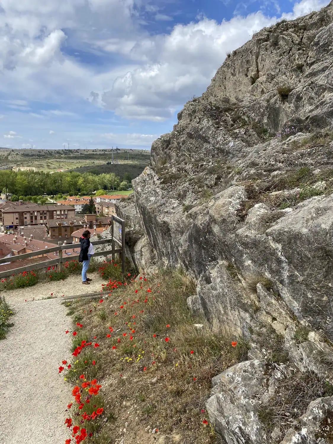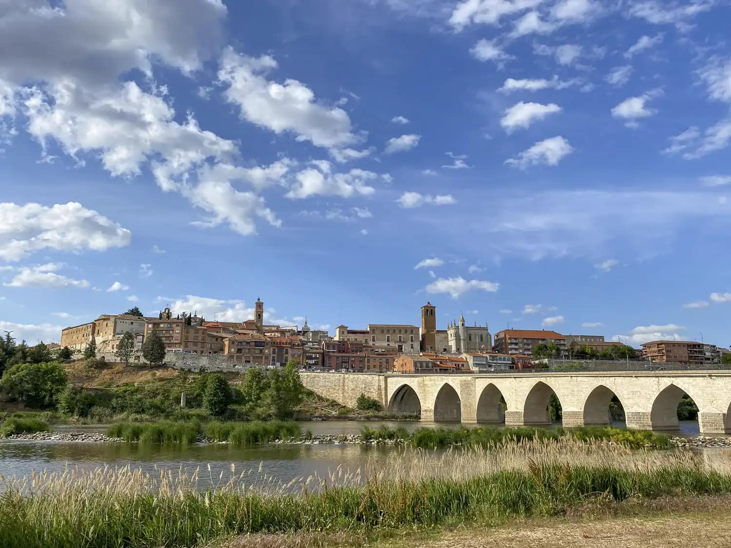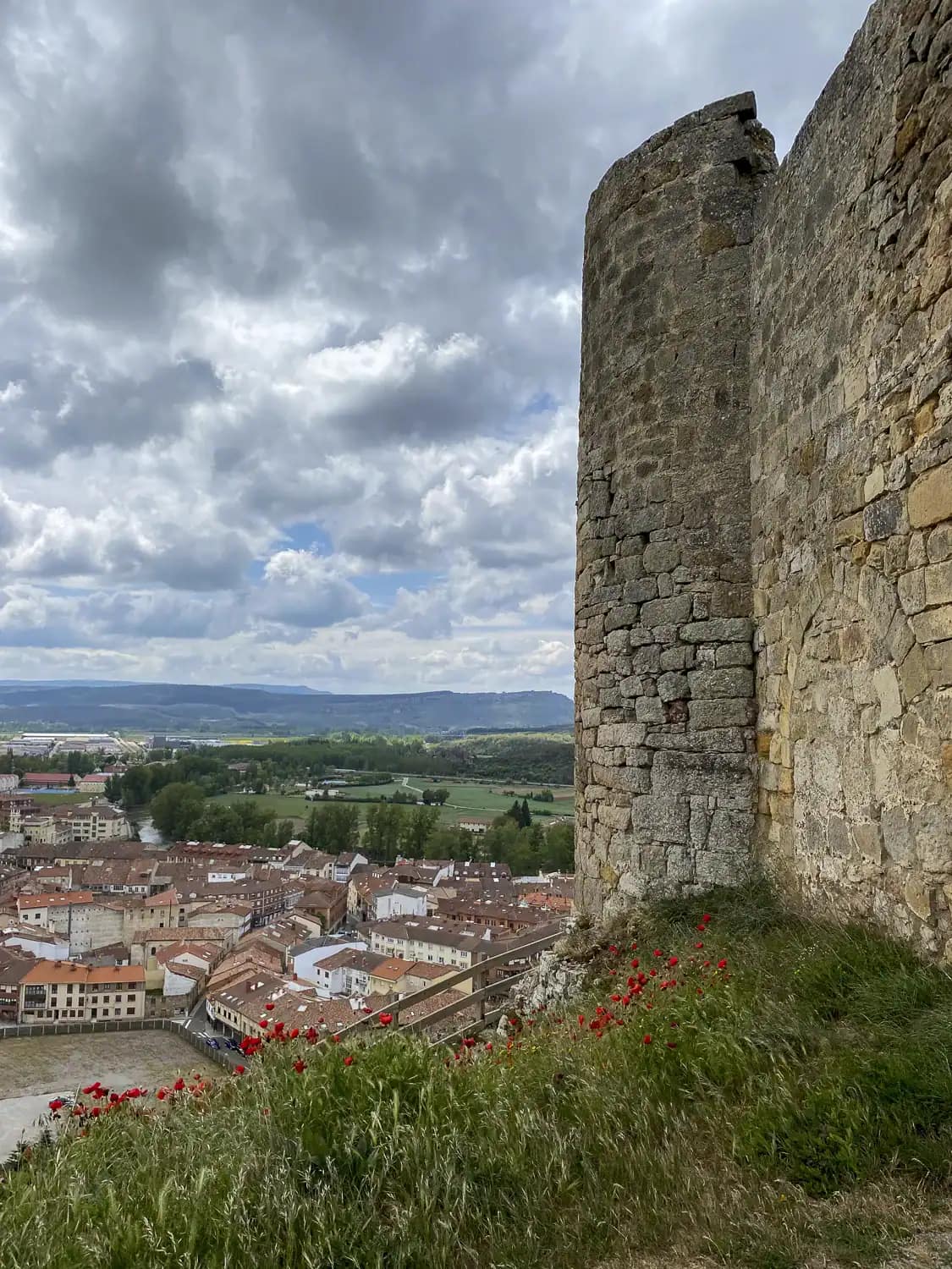 After a while, Dave wanted a break so we pulled off at random and came to Aguilar Del Campo. We initially drove past an enormous ugly Gullón biscuit factory and bleak industrial units and then the historic centre emerged in the distance. It was stunning and we had a stroll around, wandered past the old city walls and Colegiata San Miguel and bought mantecados and ciegas biscuits in a cake shop. Most things were closed, probably due to a regional fiesta or that it was only 8°.