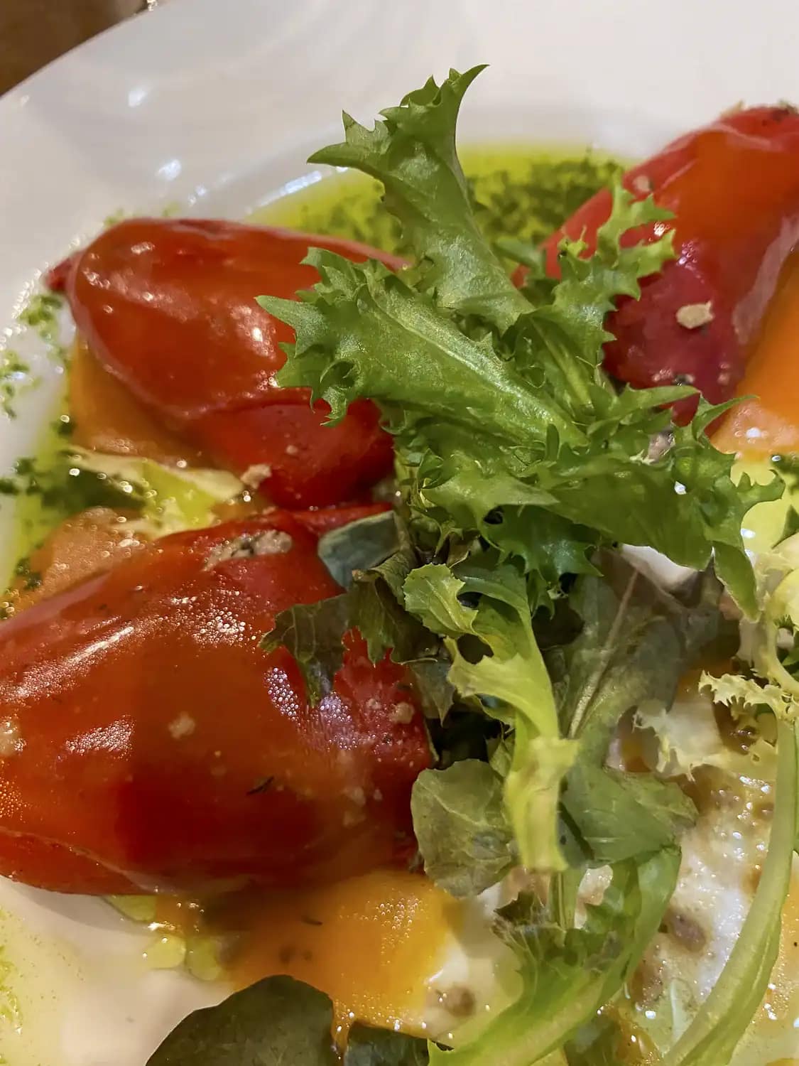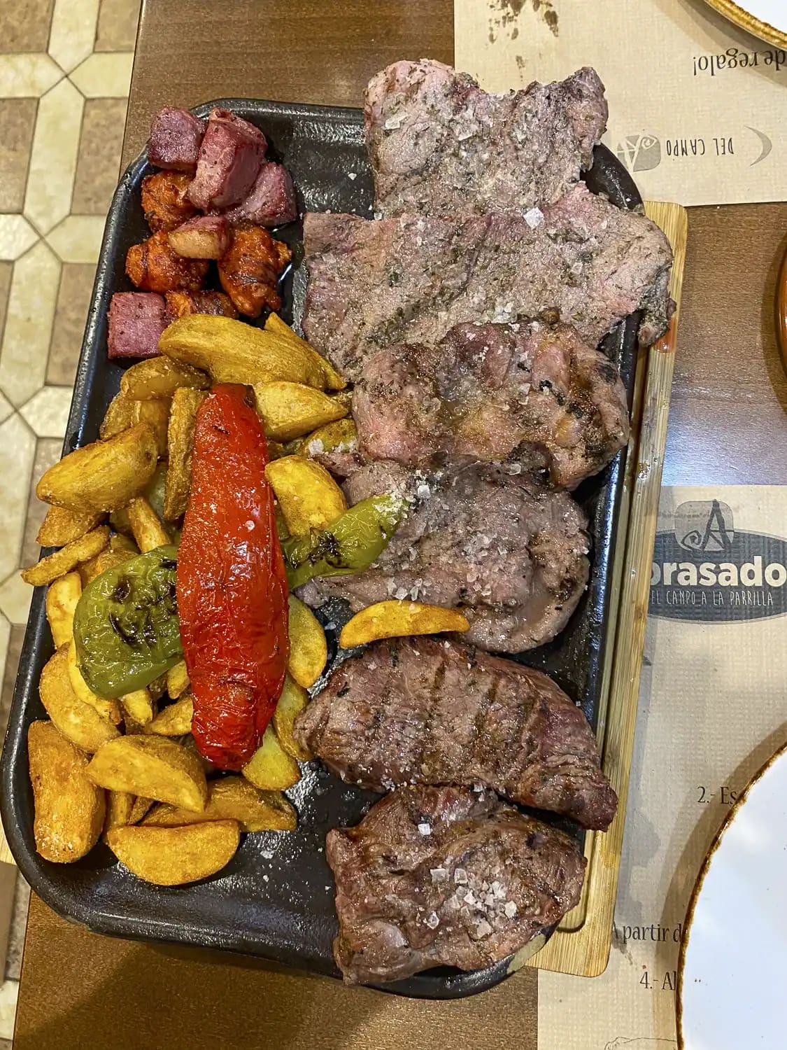 We did very little in the afternoon – we basically had a rest then strolled over to the bridge before dinner. It was really warm right up to dinner at 8pm (a bit early for Spanish dinner!). The restaurant was excellent and we ate stuffed piquillo peppers and shared a mixed grill. Since one of the objectives of this trip is to educate ourselves a bit more about wine, we had a glass of Iturria tinto 19 recommended to us by the waiter who said he doesn’t like wine but likes that one!!!