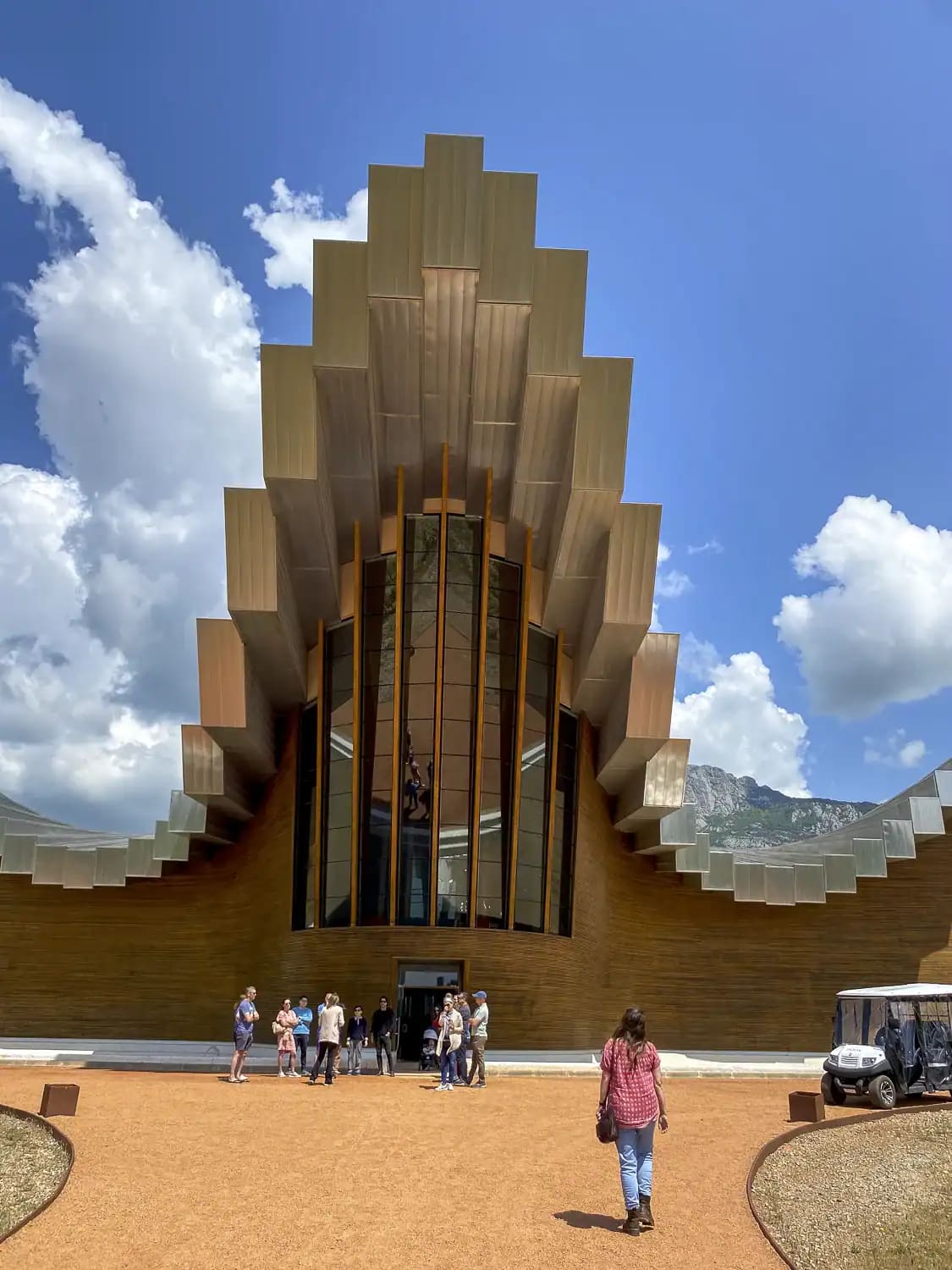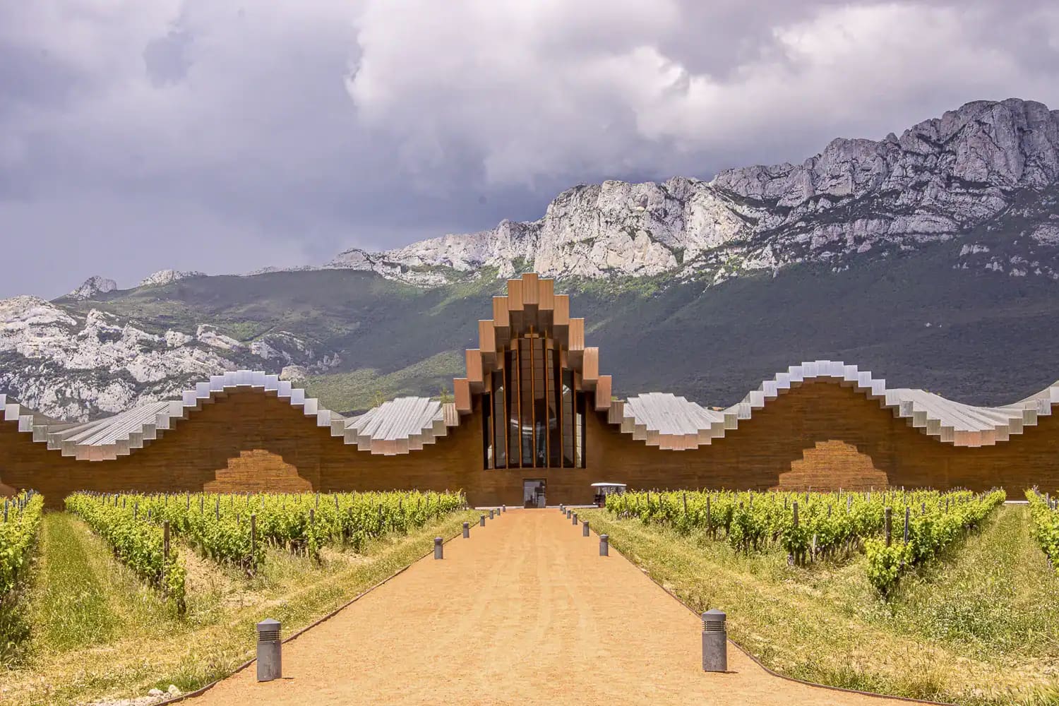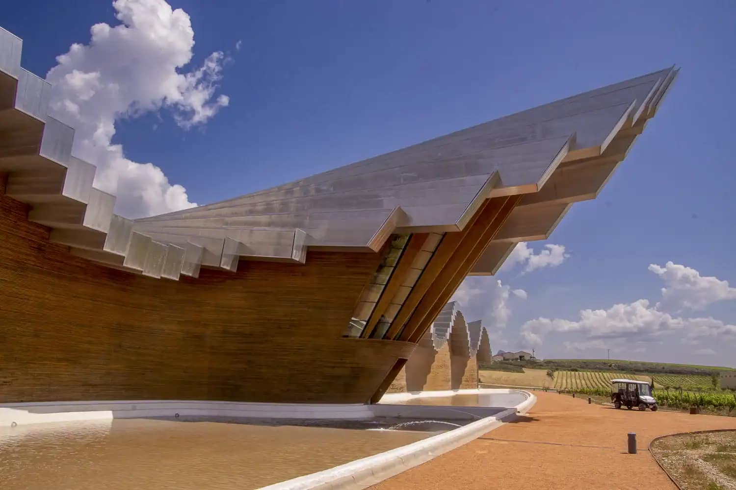 We then headed to the Ysios vineyard, renowned for its unique design. Santiago Calatrava designed the building and it looked pretty spectacular set within that beautiful landscape. He also designed the City of Arts and Sciences in his home city of Valencia along with many other famous projects and bridges. We were very lucky because a tour in English had just begun. We were able to join it, and the guide was really enthusiastic and knowledgeable.