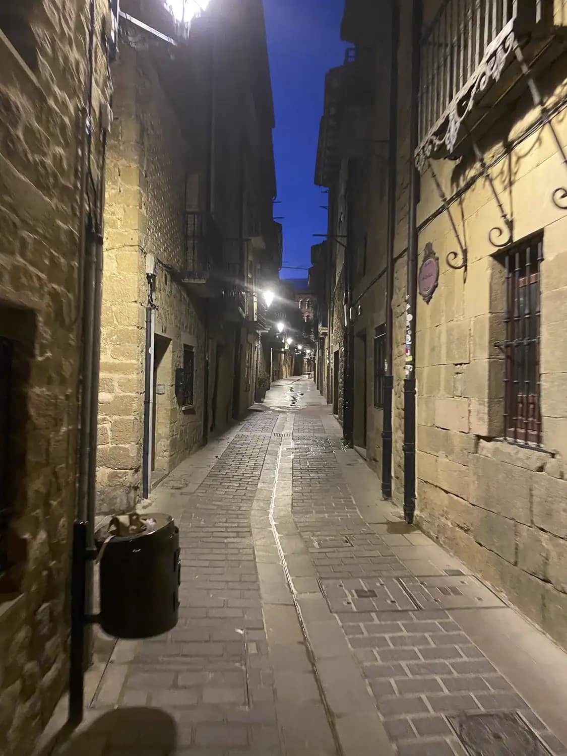 Before we headed to La Guardia, we went on a fairly long walk to a computer store in Logroño, so that Dave could try to buy the relevant cable to enable him to transfer his photos from his camera into his blog. We walked quite a long way and then there was a very helpful lady in the store. She opened the new bit of kit on Dave’s request to check that it was going to work. Just before we left, he asked her to check the old one and once she had rebooted the Mac, that one worked as well! Dave was a bit embarrassed, because he then purchased nothing. He had just saved €70, however, which as it turned out was the exact amount we spent on a wine tour later that day!! (Dave: very embarrassing! rule number 1 , power cycle/reboot it!).