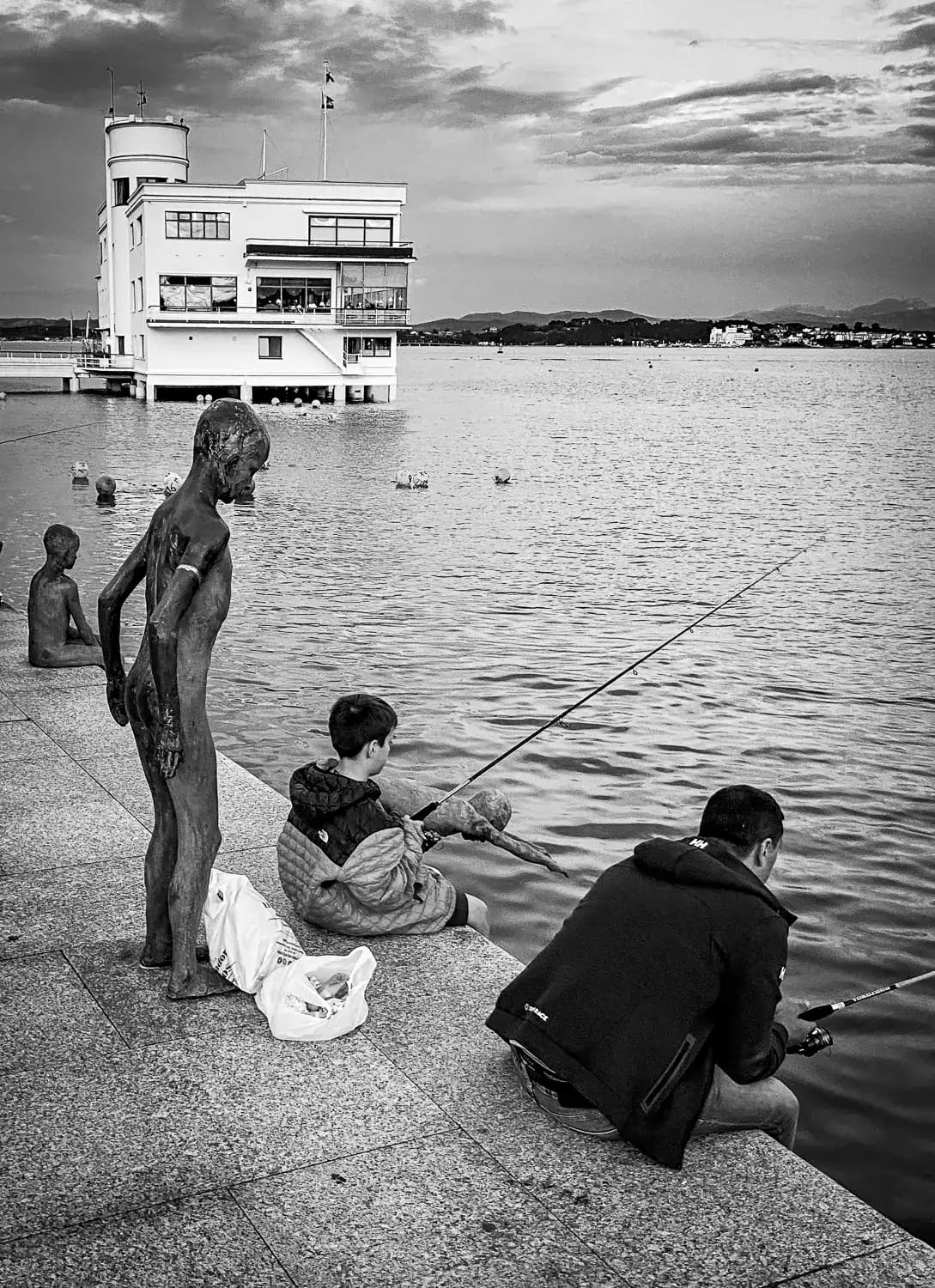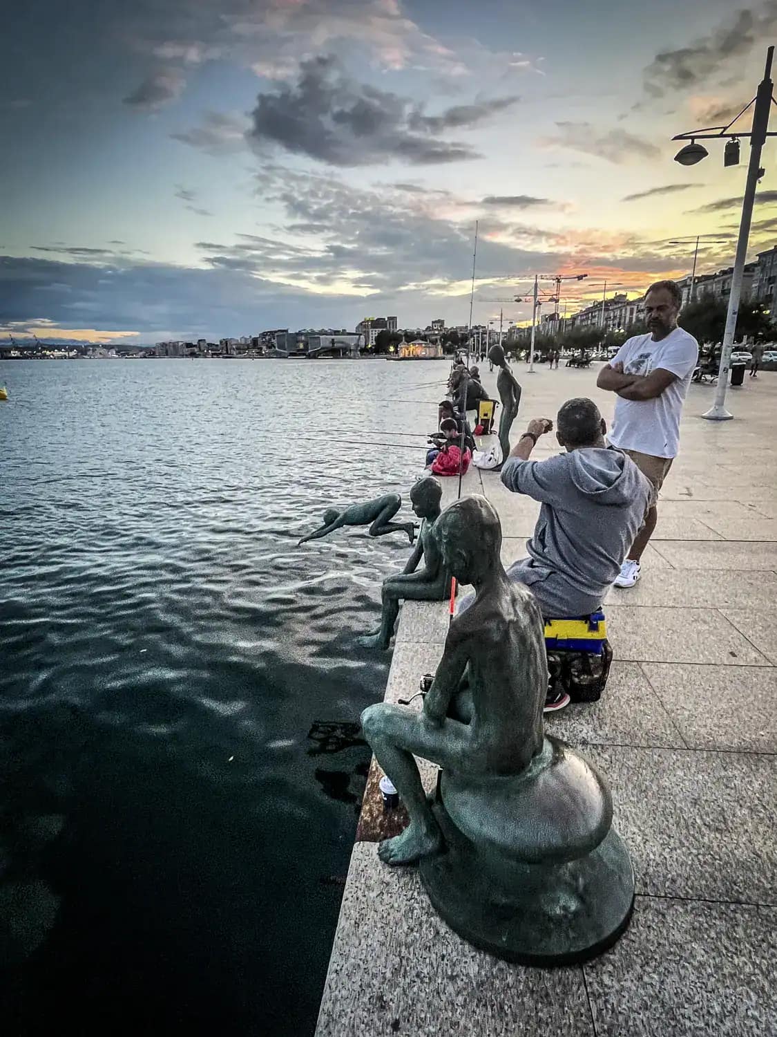 I was keen to see the statues of Los Raqueros, so we wandered over to those before getting a taxi back to the campsite. This collection of statues, meaning “the wreckers“, represents the children who in the past would make a living by scavenging – they would dive to collect items from the seabed or coins that had been thrown from the ships. This activity seemed to cease when universal education became available. The characters are referred to in the 19th century novels of José María Pereda. The statues are by the local sculptor José Cobo, who has done several other major sculptures in the city.