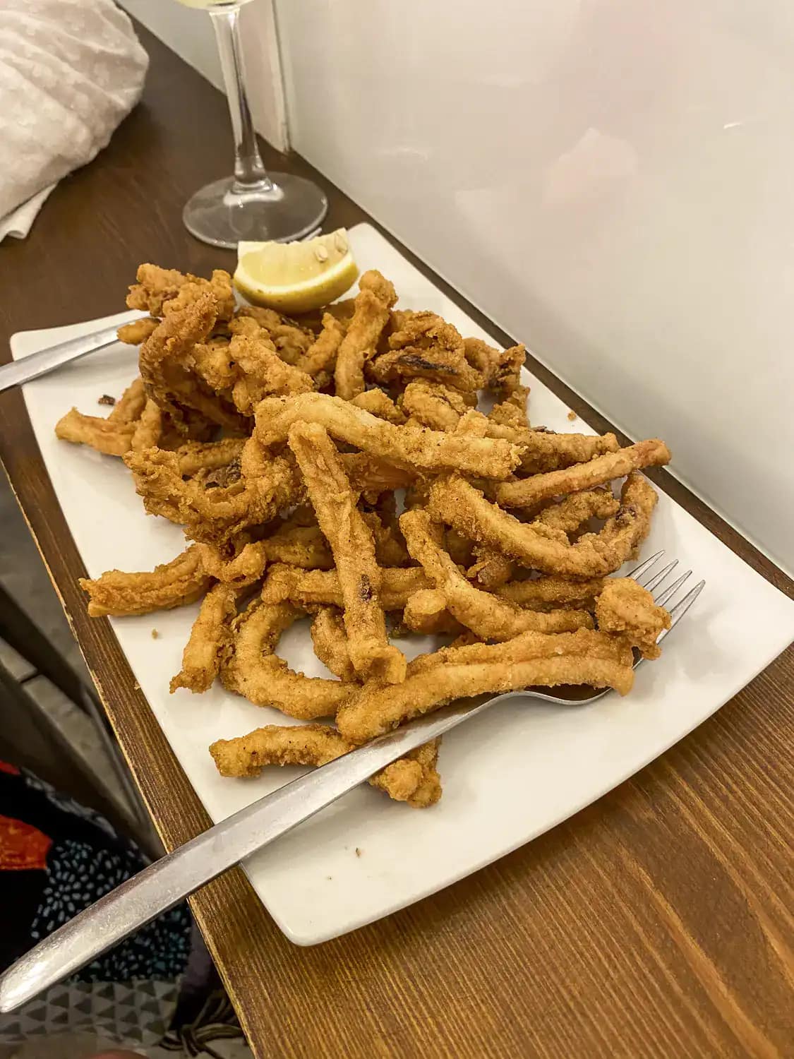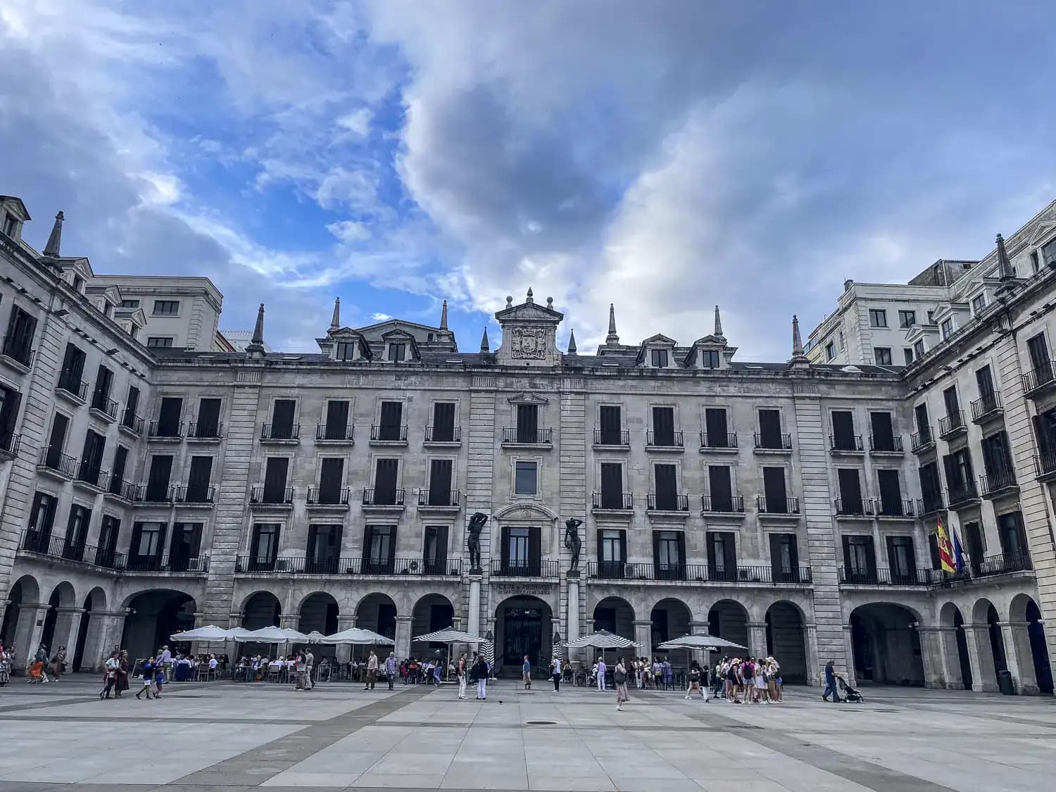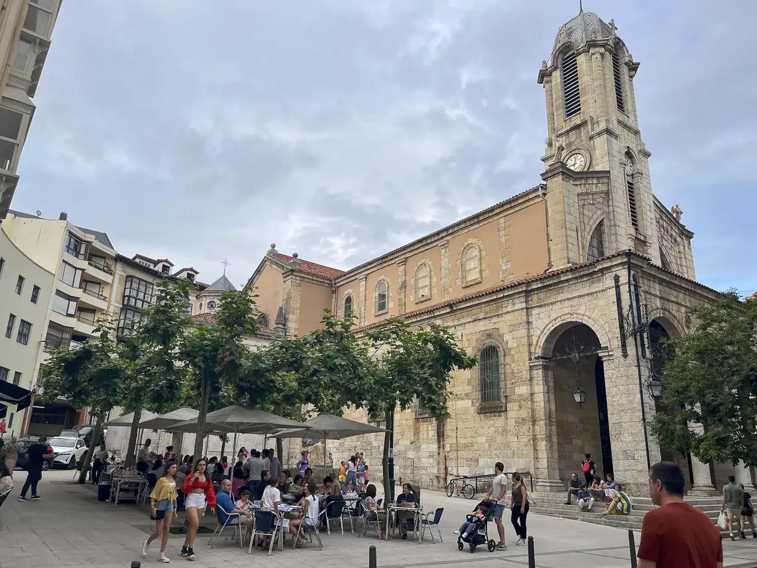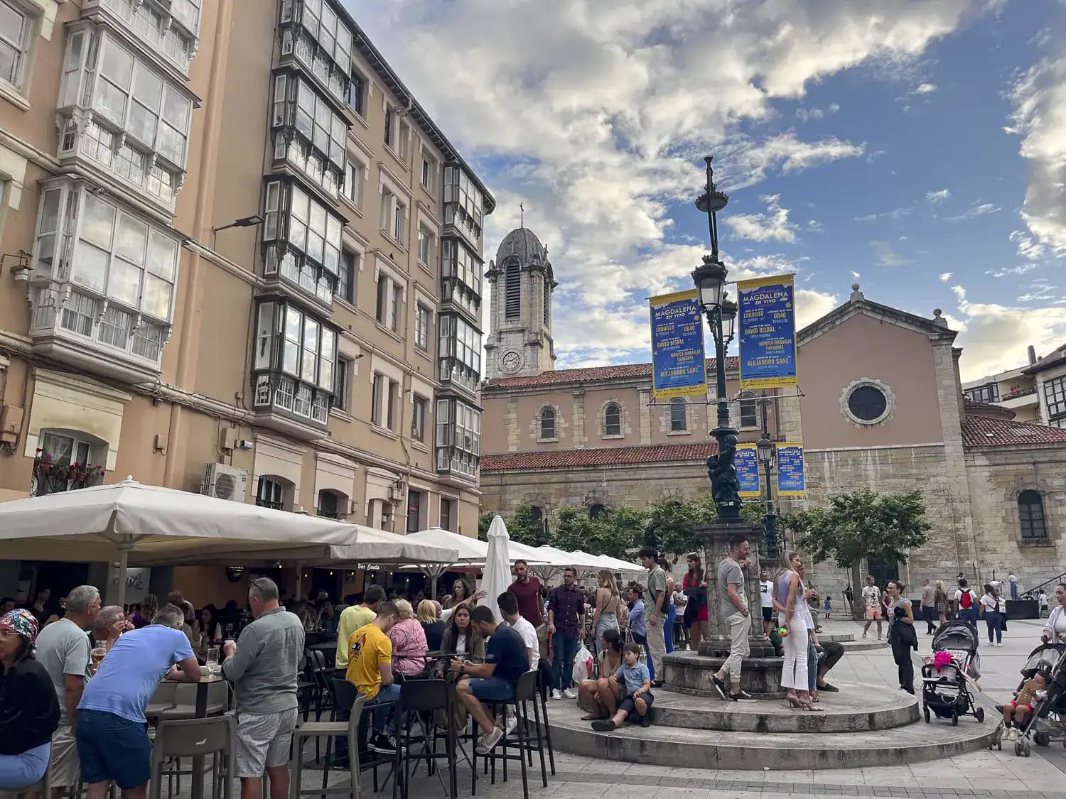 We headed for the Paseo de Pereda and had a drink. The Parque de Pereda was along the seafront and we loved the typical traditional buzz of the Spaniards and tourists out on the evening walk, with children playing and noisy chatter! Next we came to the Plaza porticada, which was a stunning square fronted by a statue of Pedro Velarde. We passed the cathedral nearby and then came to the Mercado del Este, where we stopped for our first snack at La Casa Indiano. After that we went to the Plaza de Cañadío, which has been recommended as the place for tapas and the rise in volume as we rounded the corner to the square was dramatic! There were literally hundreds of people socialising in that square. we had our second tapa of the night. Dave had the typical snack of the region, rabas, fried squid in batter!