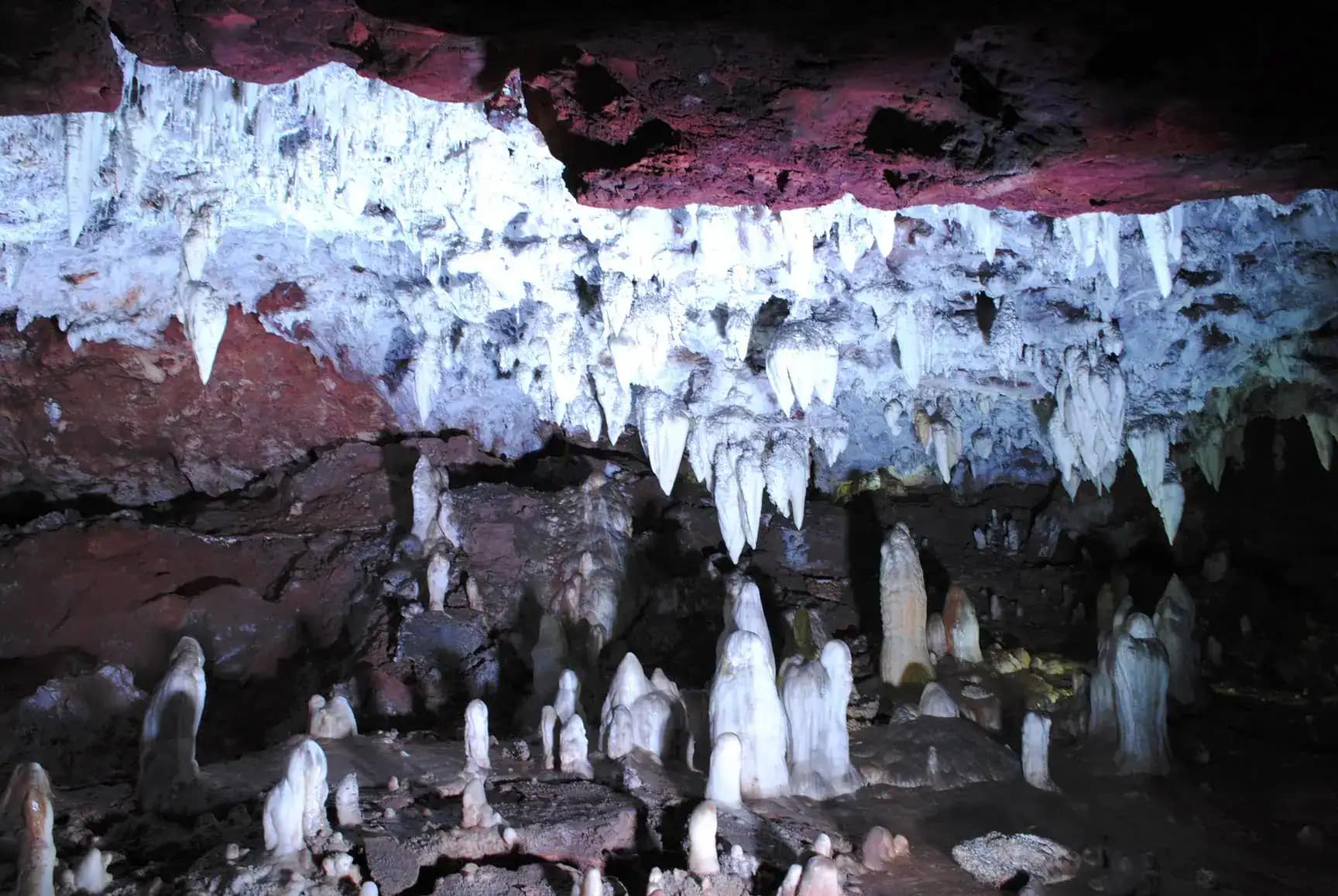 When we finally got there, there were several school groups and it looked to be well set-up with a shop, café, viewing point and plenty of information! We got a rickety train for the first part of the visit, which took us through a mining tunnel into the cave complex. The cave itself was fantastic and had loads of different features. It was not just impressive stalactites and stalagmites, but also helctites (eccentric stalactites – meaning the formations grow outwards in an apparent gravity-defying way) and draperies, which are sheets of calcite formed from trickles rather than drips, so taking on the form of a sheet or drape of material. We weren’t allowed to take any photos whilst in the caves, so there are a few from the internet below, one of which shows the aptly named ‘Cueva de las fantasmas’ – Cave of the ghosts.The tour was 50 minutes long and very good.