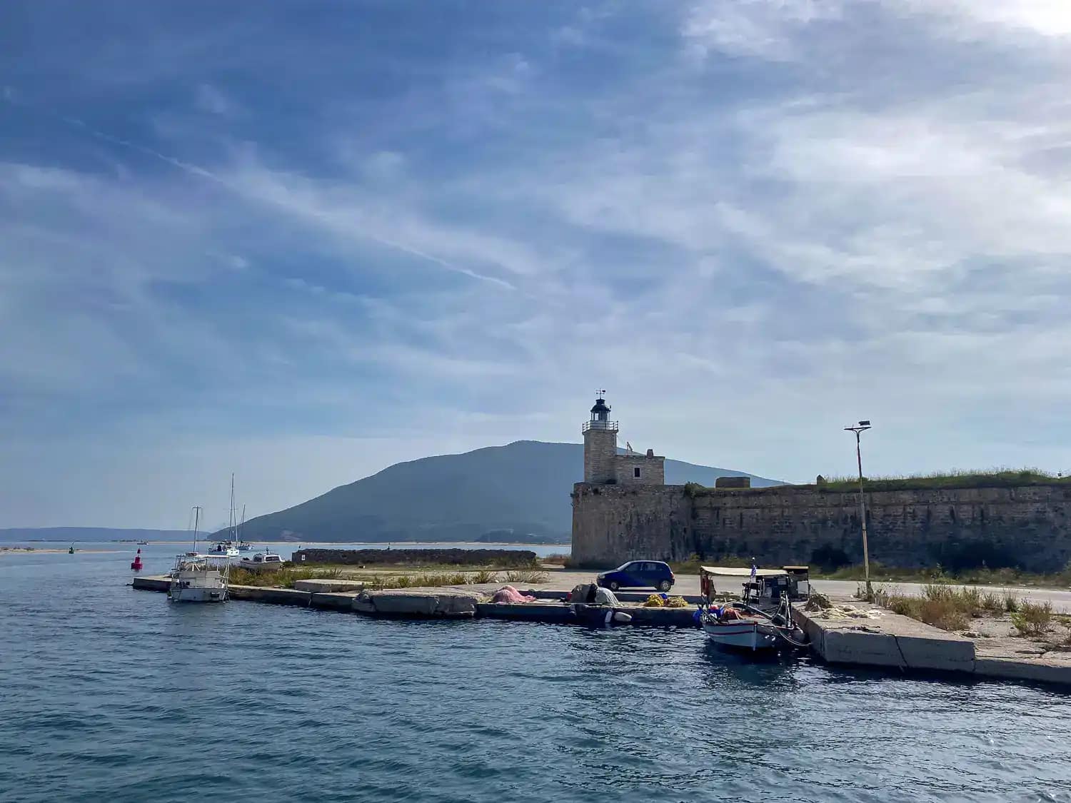We had a gentle start to the day after our ‘big night out’ and left Lefkada in time to get through the 11 o’ clock opening of the floating bridge which opens on the hour from 8 onwards. This bridge is only 50m long and connects Lefkada to the mainland.