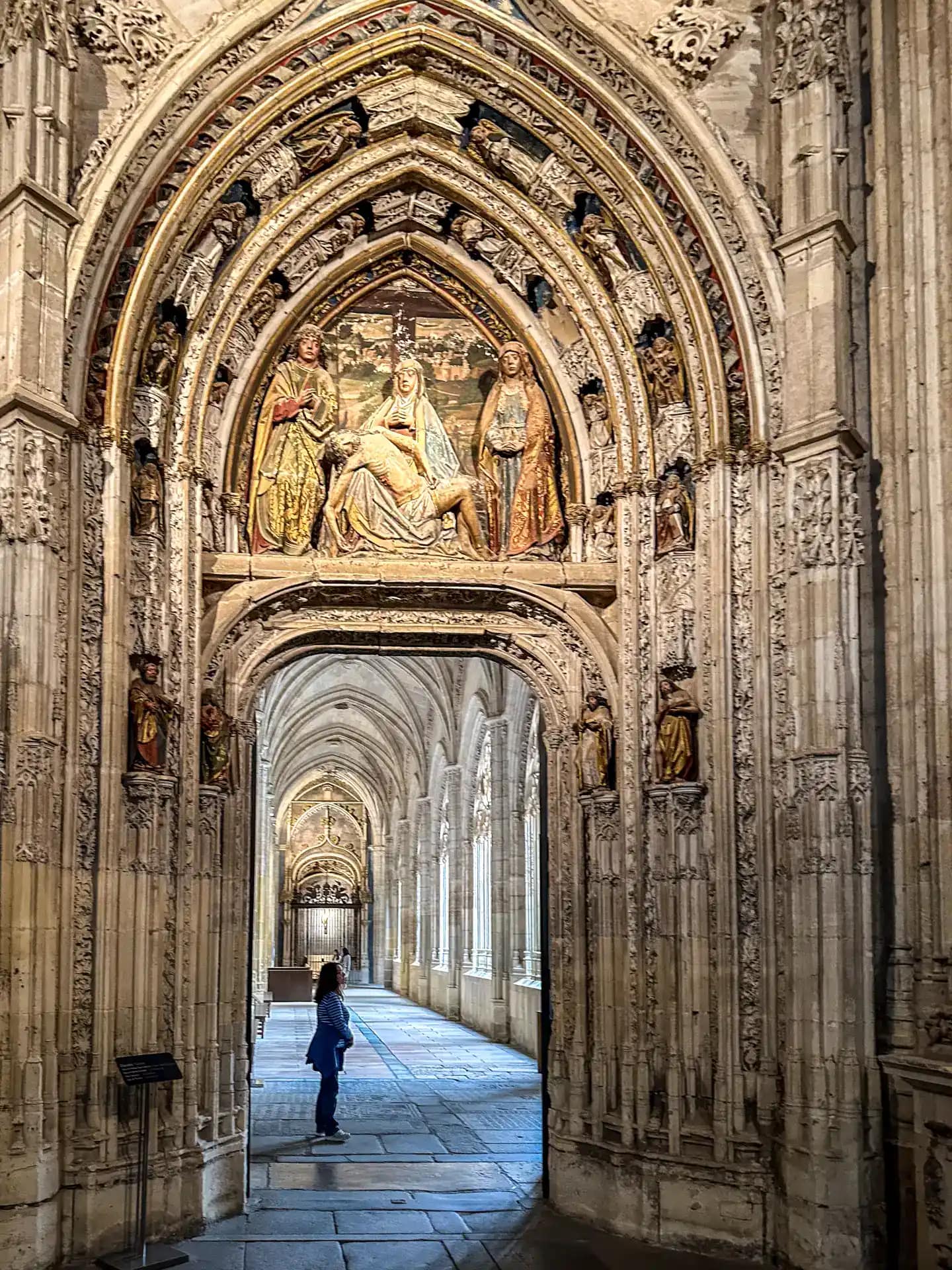 We walked down to the castle first as the light was brilliant so Dave was keen to take more photos. We had plans to visit the Cathedral and headed there first thing. We also opted for a guided visit of the tower as we thought the views would be incredible. The cathedral tower took 38 years to build from 1530 to 1568 and was the tallest in Spain. The tour was very well organised, there was a really good video presentation which ran through the history of the cathedral, we saw the bell ringer’s quarters and then got to the Bell tower at the top with spectacular views in all directions. It was well worth the 190 step climb up a spiral stairway and doubled up as a workout as well!! Spiral stairway in Spanish is ‘escalera de caracol’, which translates as snail stairs – this pretty much described my pace!!