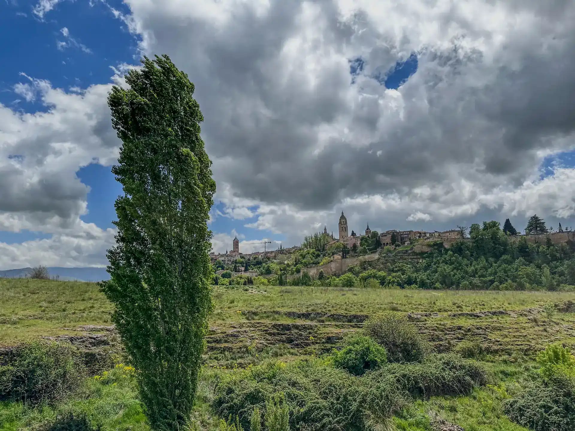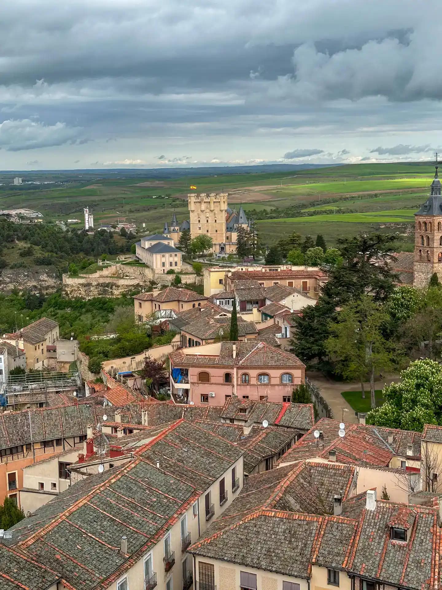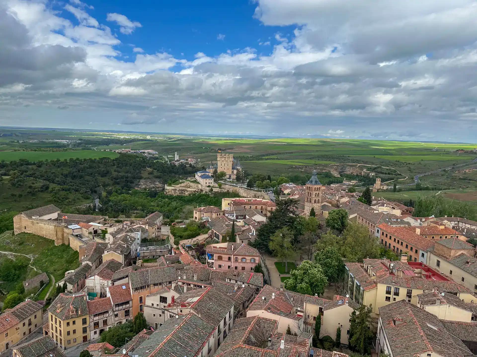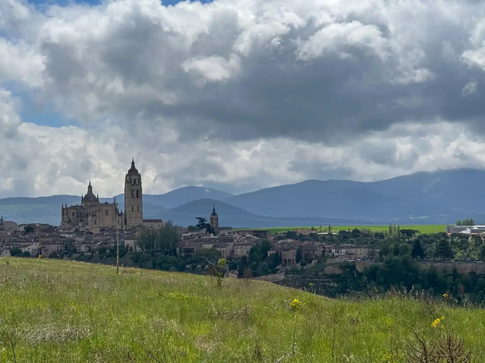 We checked out of the hotel, fetched the van and drove to the Iglesia de La Veracruz as Dave thought it would be a great spot for alternative views of the castle. We took the opportunity to visit the inside of the small church – this was a 12 sided hexagon which from above looked like a circle. The 12 sides represent the 12 apostles. We continued uphill and stopped at the village of Zamarramala for views back down to the cathedral and the mountains beyond.