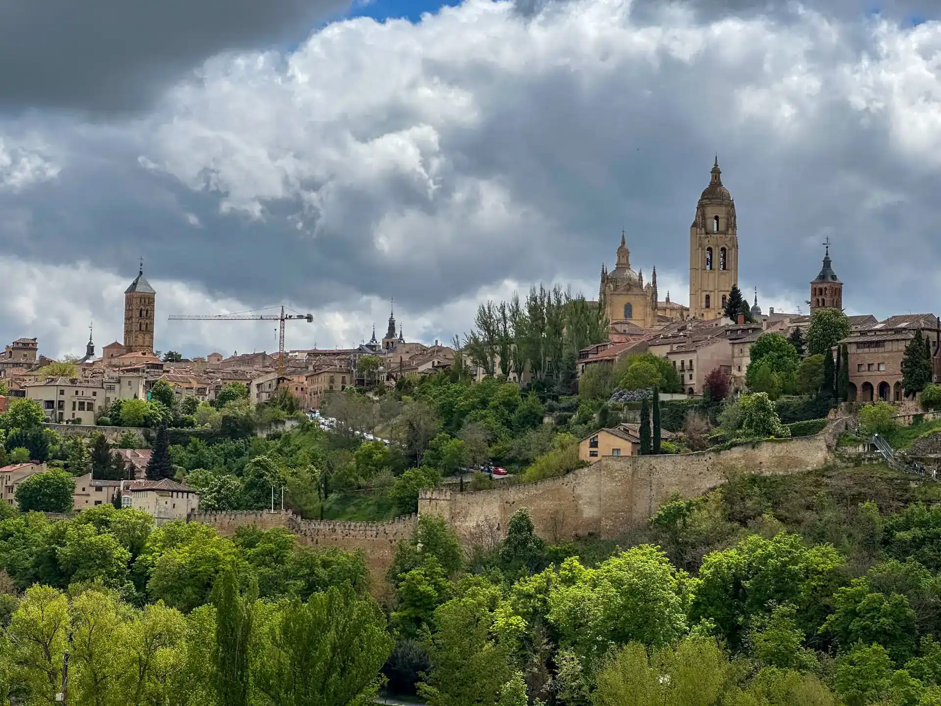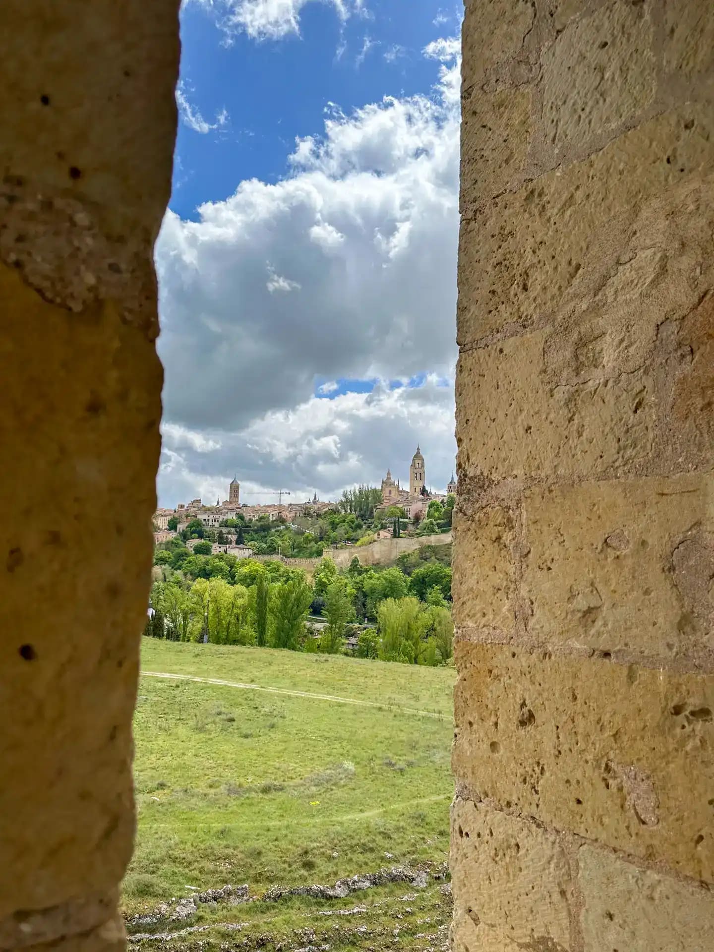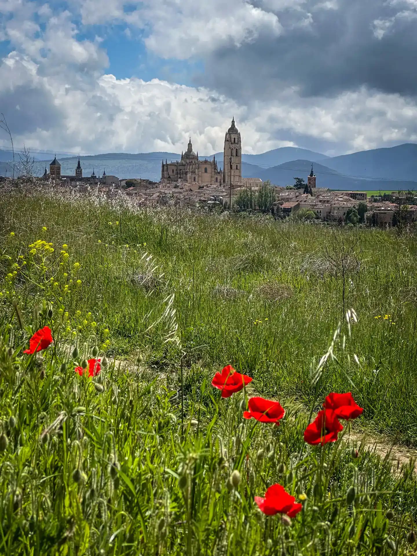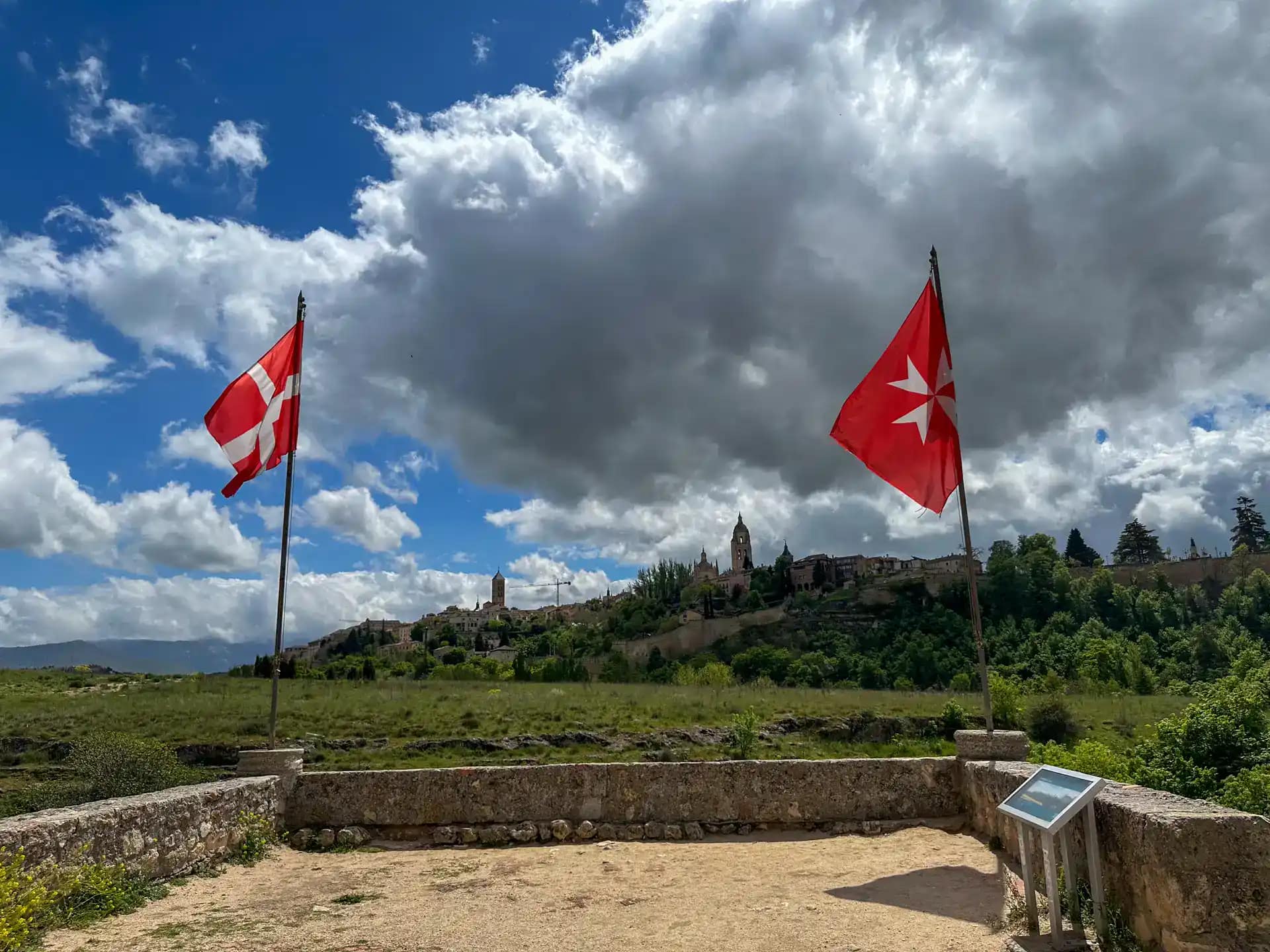 We checked out of the hotel, fetched the van and drove to the Iglesia de La Veracruz as Dave thought it would be a great spot for alternative views of the castle. We took the opportunity to visit the inside of the small church – this was a 12 sided hexagon which from above looked like a circle. The 12 sides represent the 12 apostles. We continued uphill and stopped at the village of Zamarramala for views back down to the cathedral and the mountains beyond.