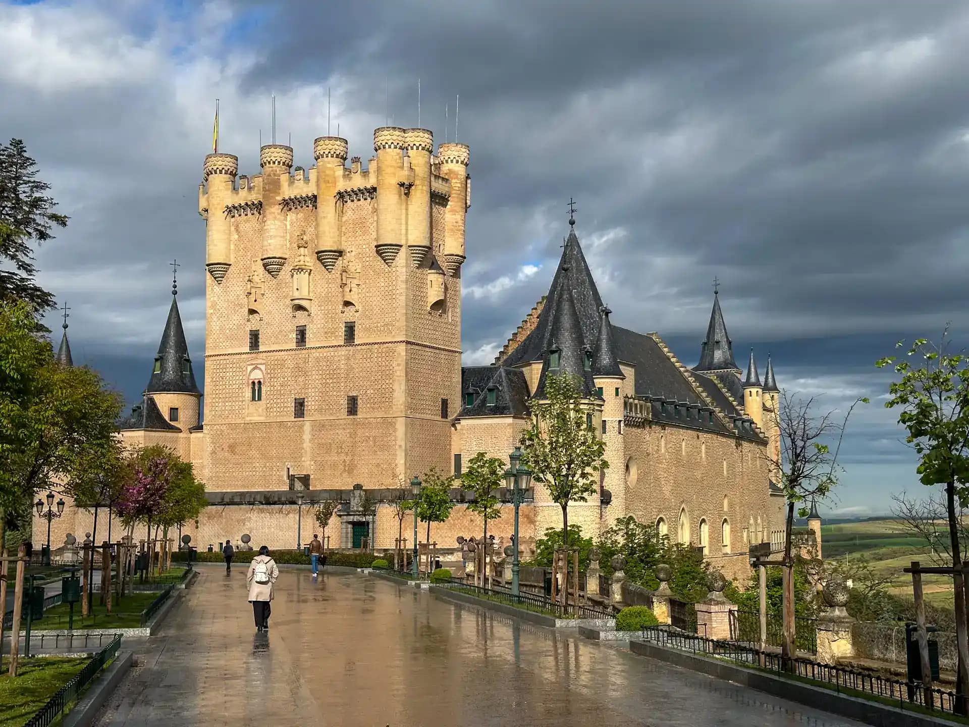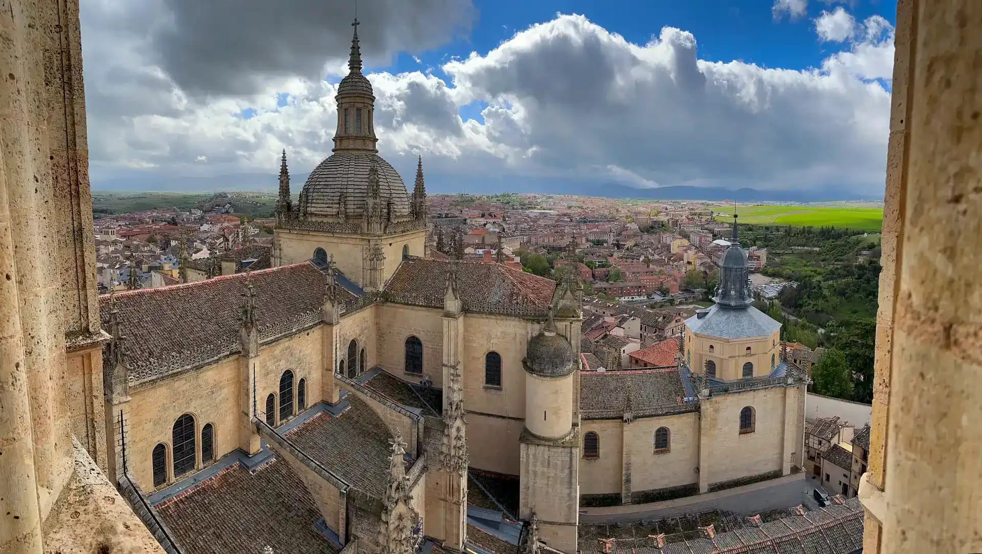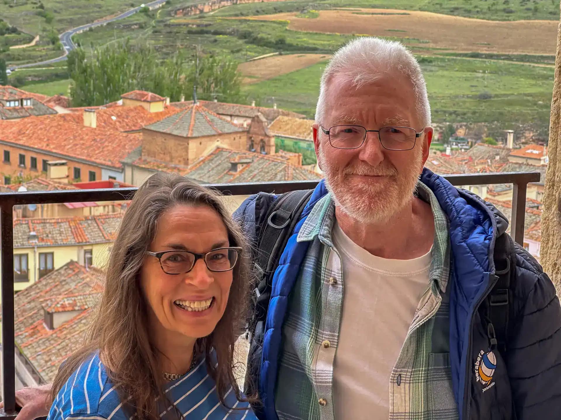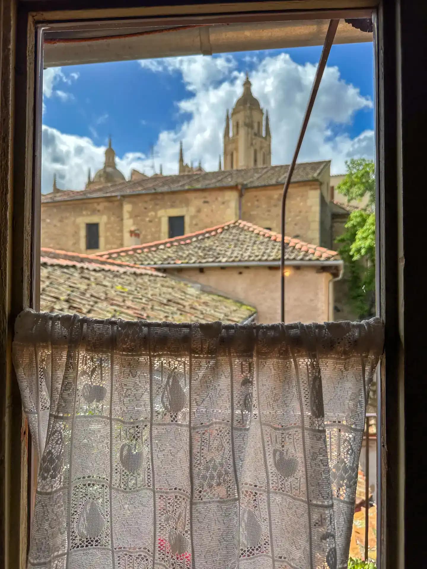 We checked out of the hotel, fetched the van and drove to the Iglesia de La Veracruz as Dave thought it would be a great spot for alternative views of the castle. We took the opportunity to visit the inside of the small church – this was a 12 sided hexagon which from above looked like a circle. The 12 sides represent the 12 apostles. We continued uphill and stopped at the village of Zamarramala for views back down to the cathedral and the mountains beyond.