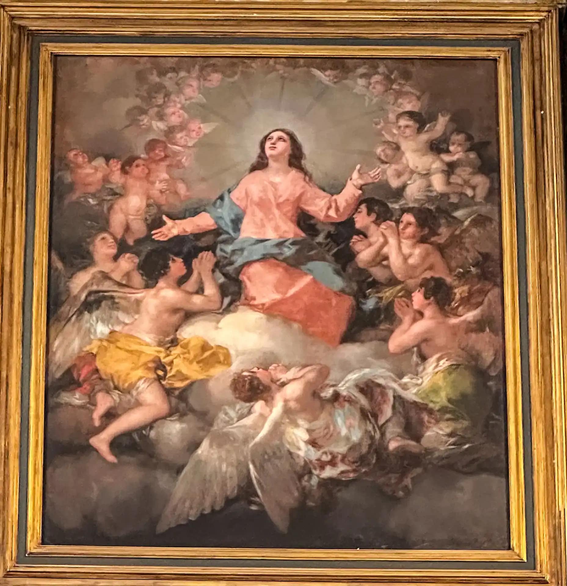 Next to the theatre is the imposing church Iglesia de Nuestra Señora de la Asunción which dates back to the 15th century. One of the main attractions inside this church is the original Goya painting above the altar – it’s very unusual to find this in such a location – the painting was gifted in 1812 by Goya to his brother who was the priest of Chinchón at the time. Normally you would have to go to a formal gallery to see these – El Prado in Madrid, for example, has 140 of his paintings.