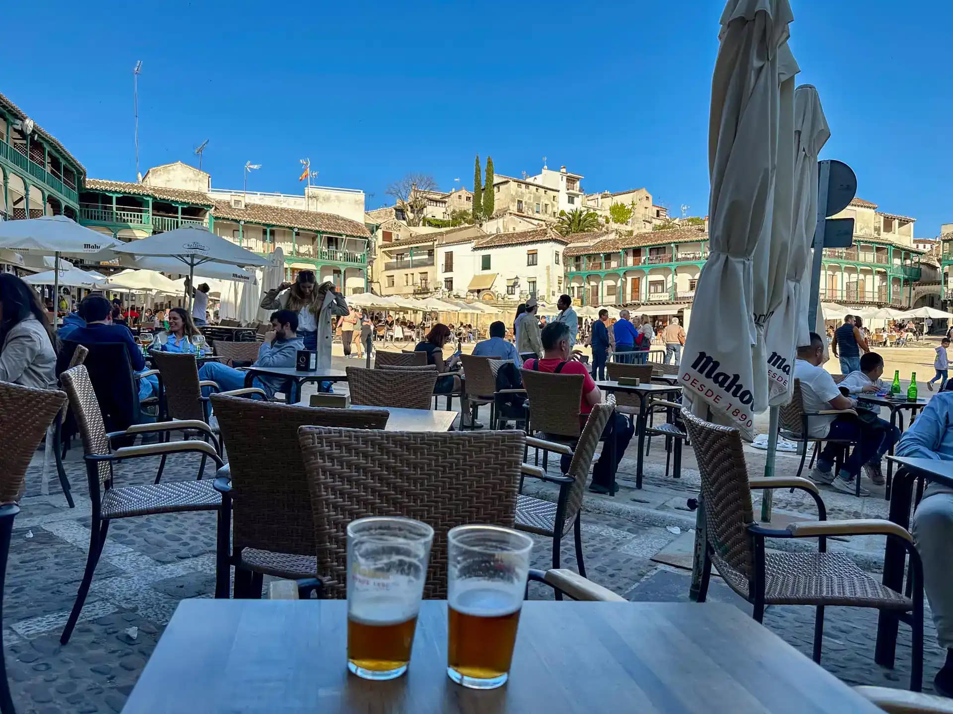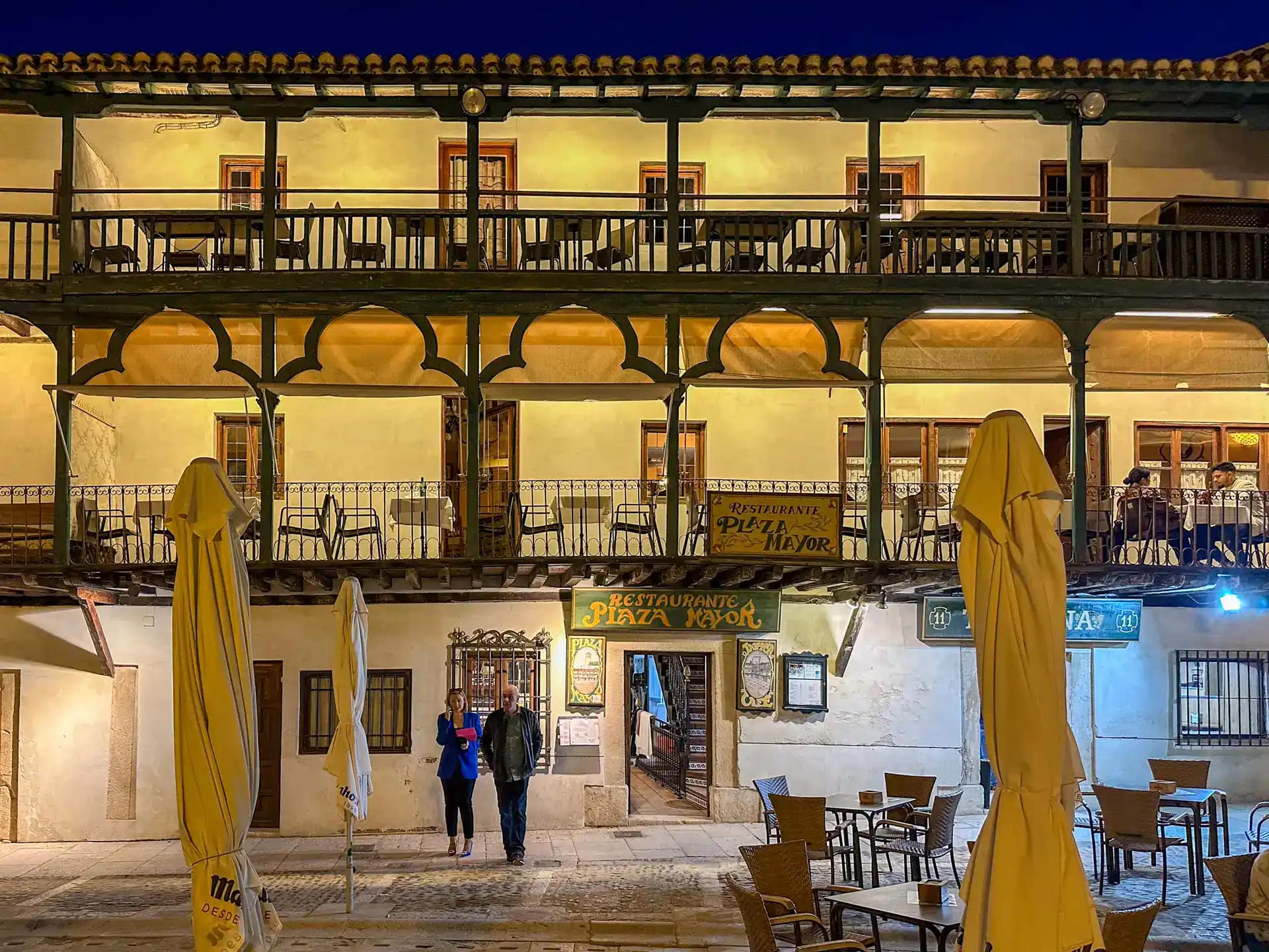 After our early evening stroll, we settled into a bar in the main square and had a couple of drinks. We were very pleased to be able to reserve a table on one of the balconies in the Restaurante Plaza Mayor. I had always fancied eating on a balcony seat with that fantastic view out over the square. When we had visited previously, the balconies were full to bursting and we thought there was no hope of getting a place. So, we were very chuffed to get a reservation and then rather surprised that we were literally the only people in the whole restaurant 🤣 The proprietor told us that it was a very much a day trip destination so the restaurants were always buzzing for the late lunch but pretty empty in the evenings. We had a very nice set menu of typical local dishes. It was even quite cheap!!! A very relaxing evening and a welcome change of location.