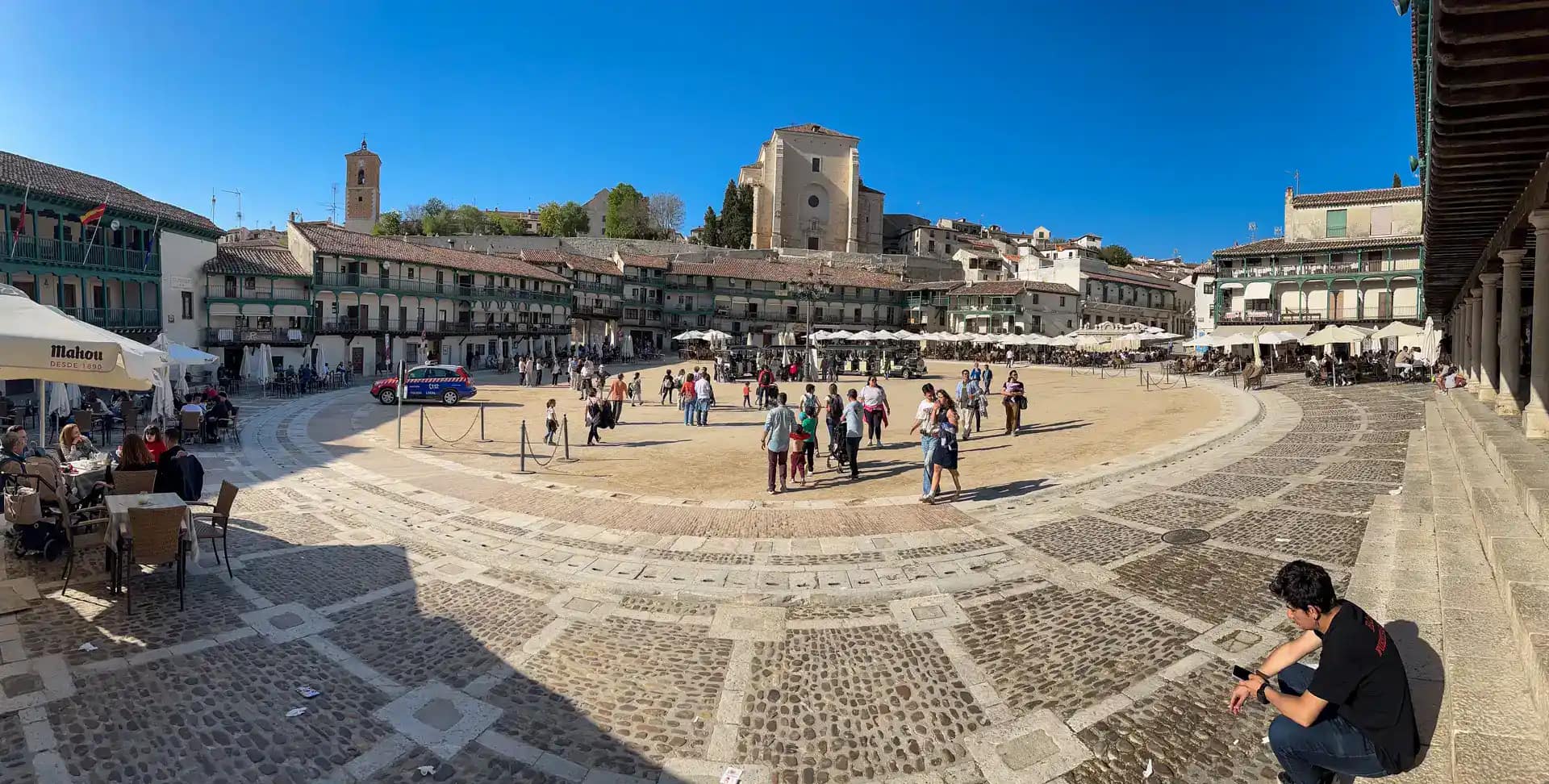 We had decided to stay in a campsite near Aranjuez ready for our visit to the palace there tomorrow. When we arrived the place was rammed due to the public holiday. There were loads of gorgeous but noisy children, hundreds of bone-shaking potholes that put the van through its paces and unfortunately they said we had to book for a minimum of three days and it wasn’t particularly cheap so we made a quick decision to divert to Chinchón about 11 miles away where we could park for the night for free in the van park and visit the centre where we had been 22 years earlier.