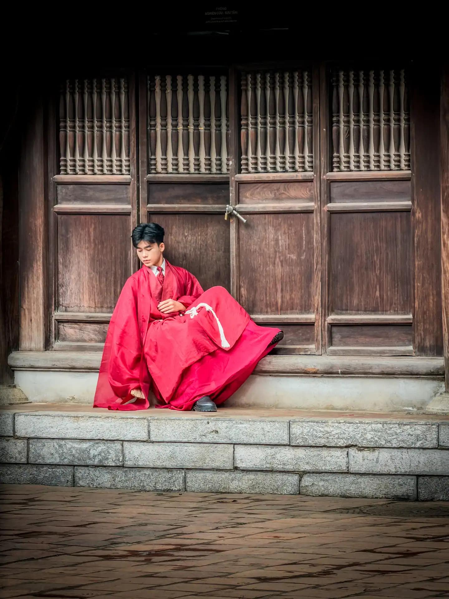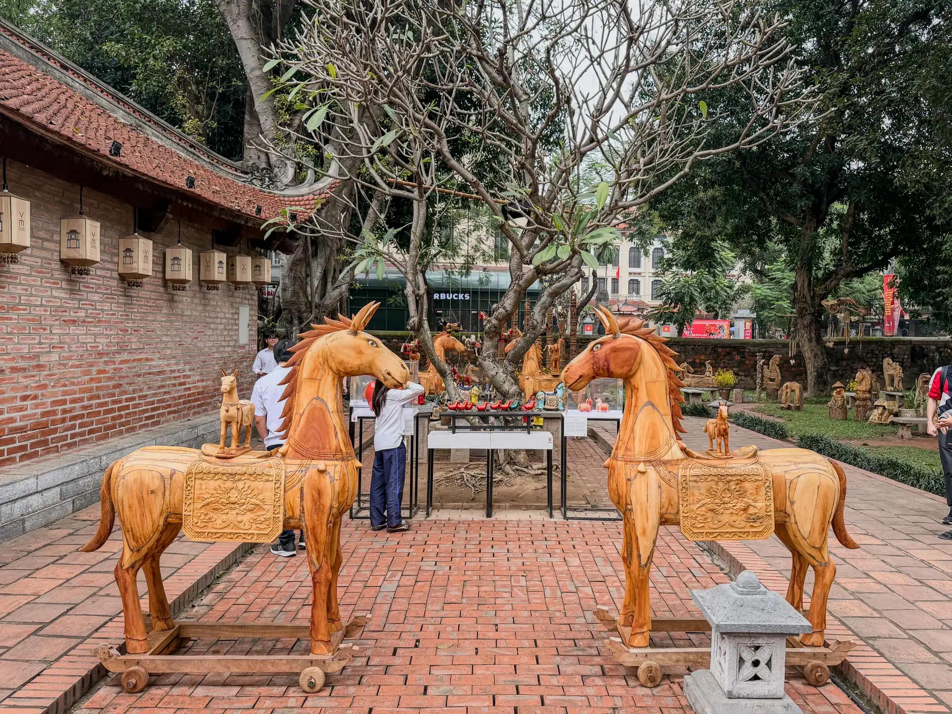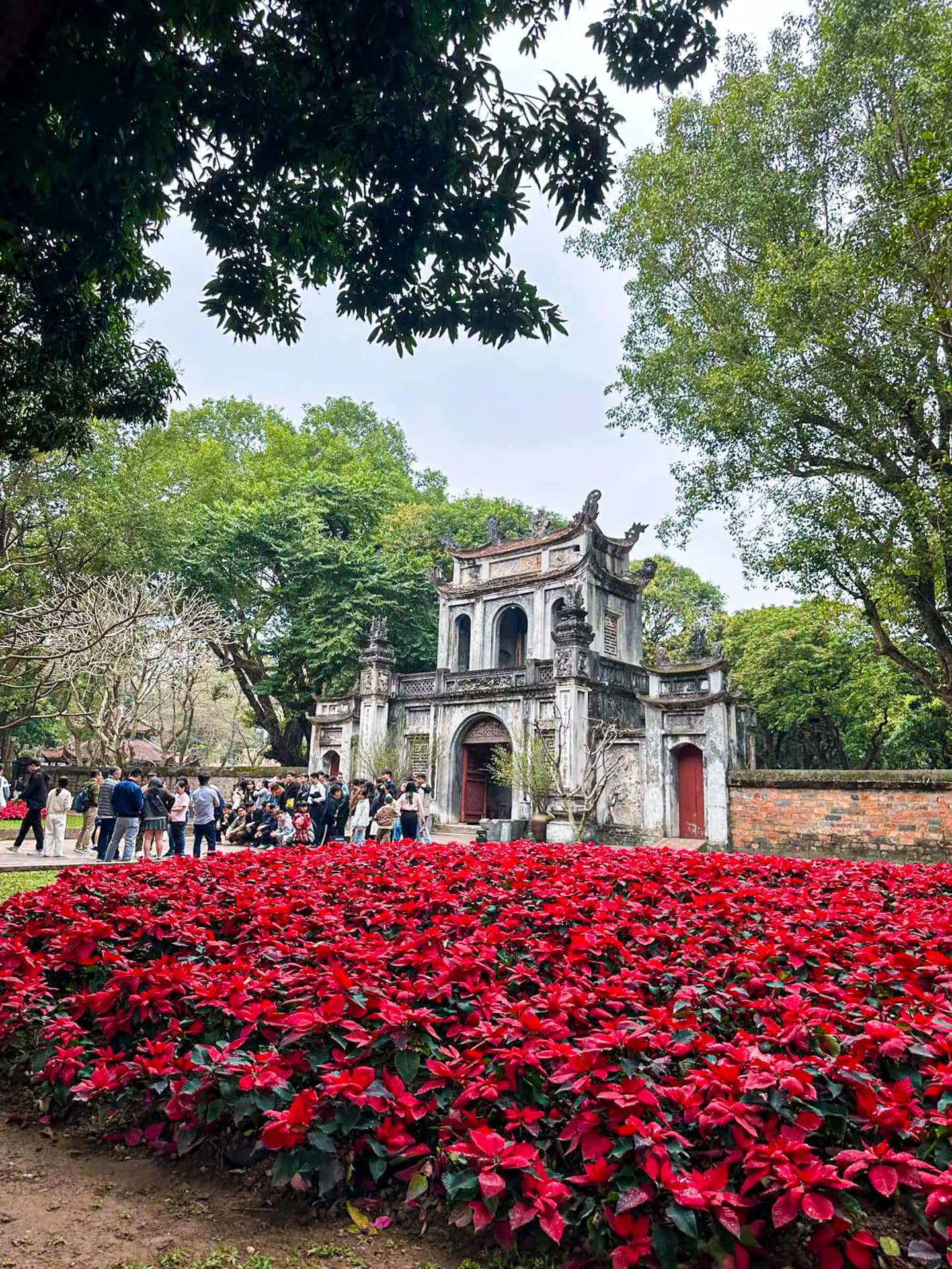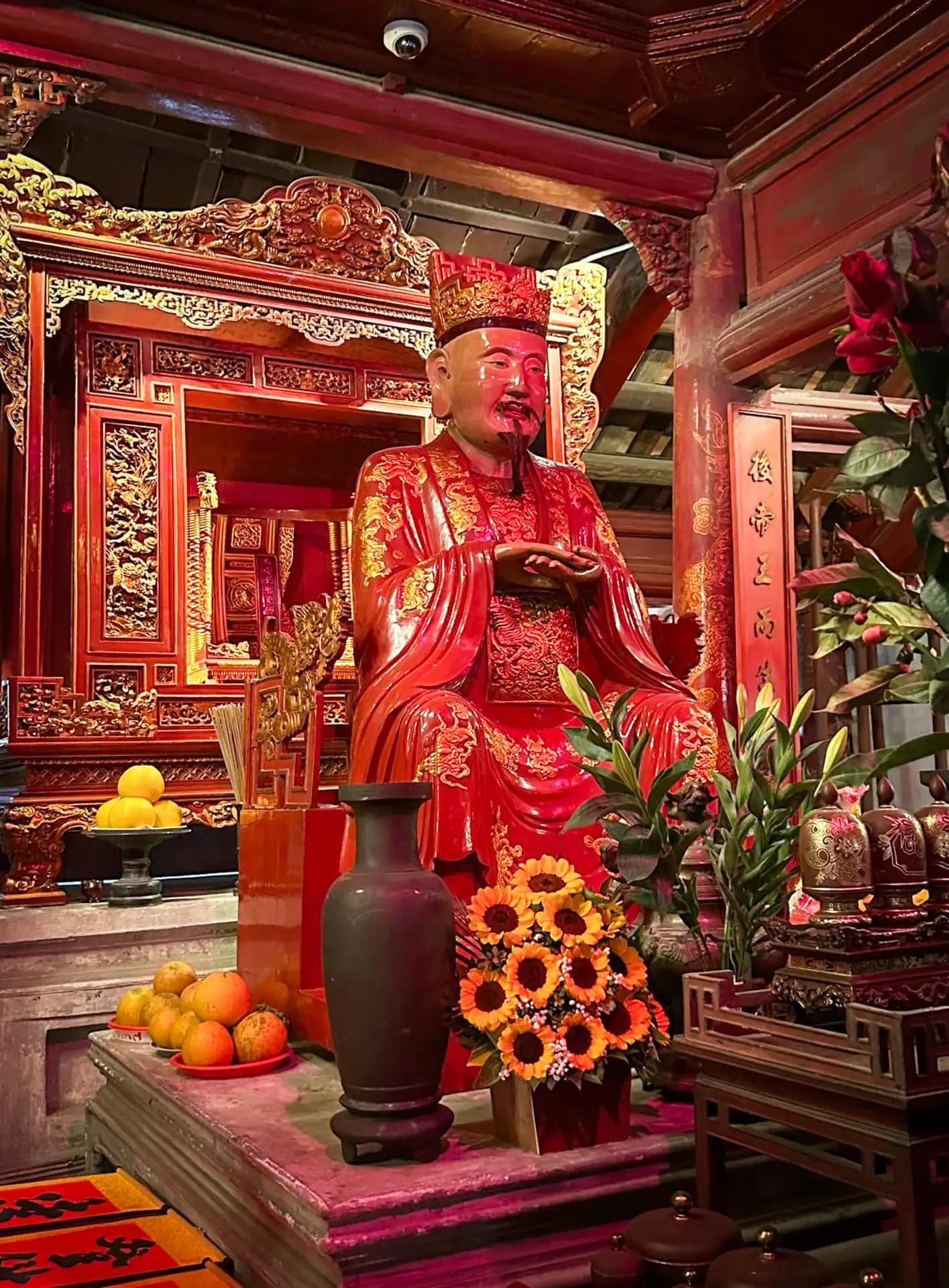 The marble monument with the turtle has a list of names of the mandarins who trained here. If somebody from a village qualified as a mandarin then the whole village was let off their taxes, so it was a very prestigious event! There was a very strong Chinese influence in the customs and the architecture here at that time. One example of this were the Chinese roof tiles sculpted like shells. The lions on the entrances to temples keep the bad spirits out, so you will often see lion statues as you enter a temple.