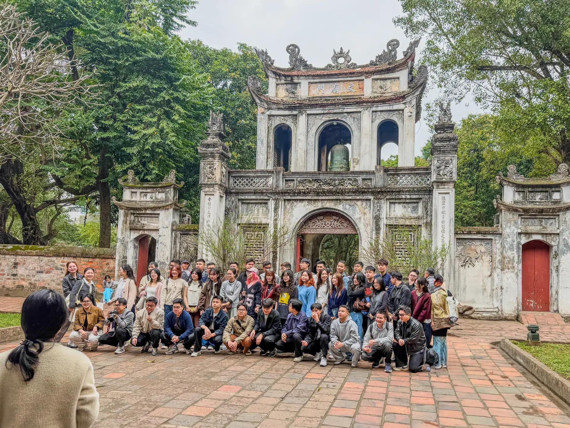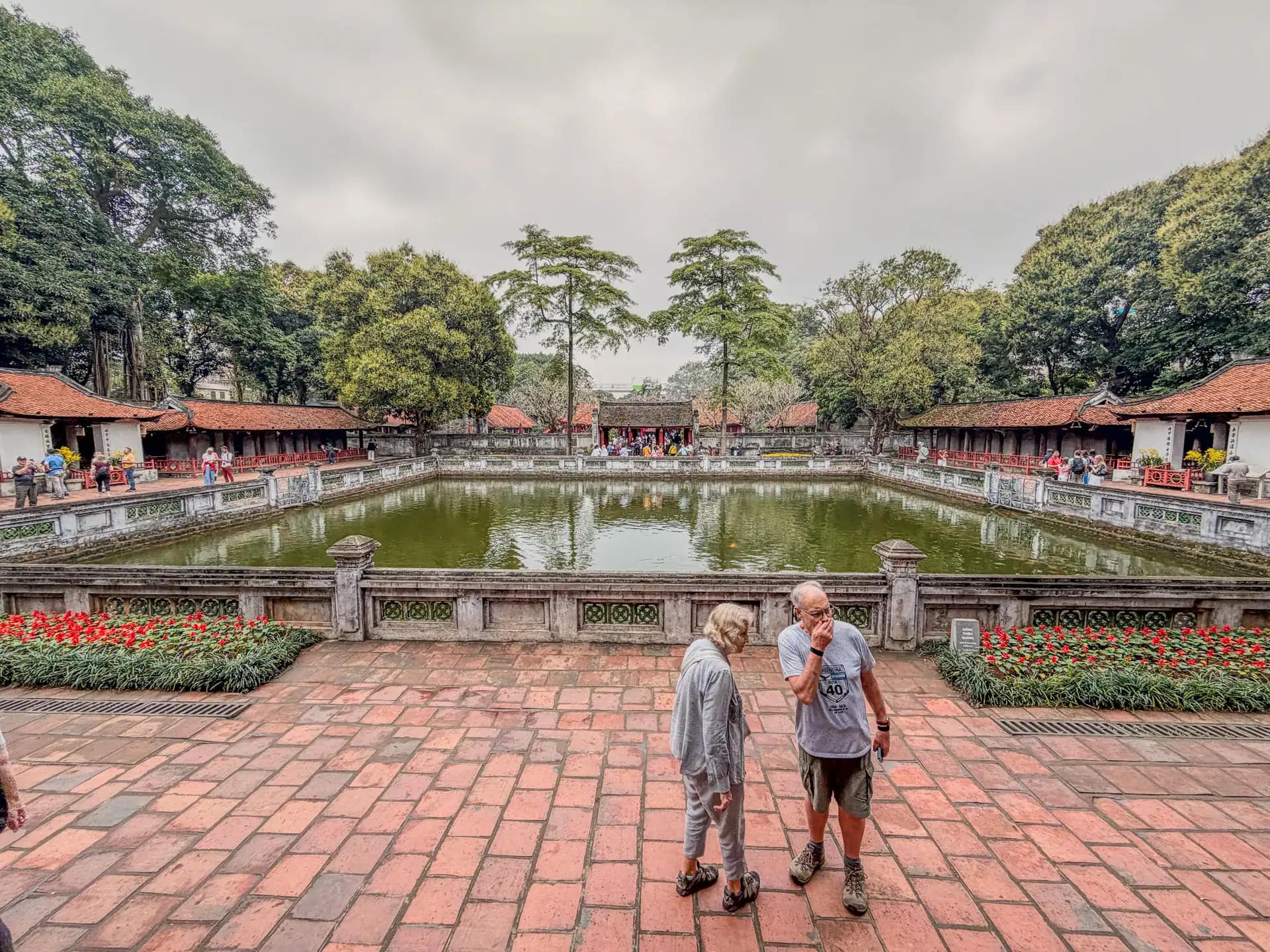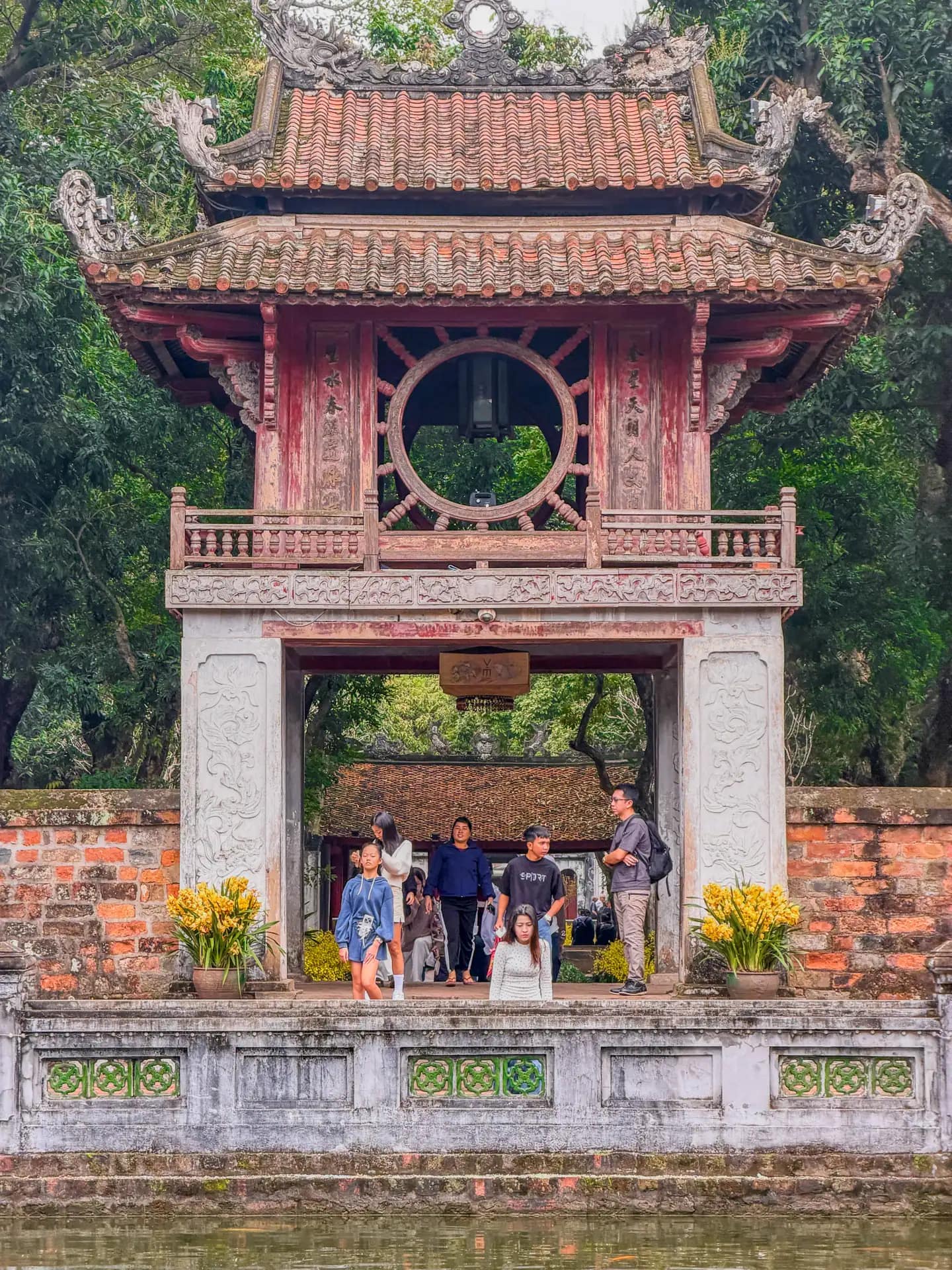 We passed the luxury shopping part of Hanoi, with much less chaotic roads and less traffic. This was followed by beautiful old French colonial buildings en route to our next stop, The Temple of Literature. This location used to be the university for the whole country, initially only for boys. The Khue Van Pavilion(Constellation of Literature Pavilion), pictured below, features on the green 100,000 Dong note.