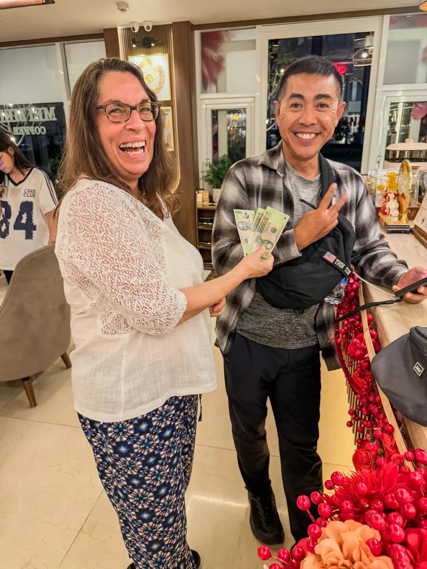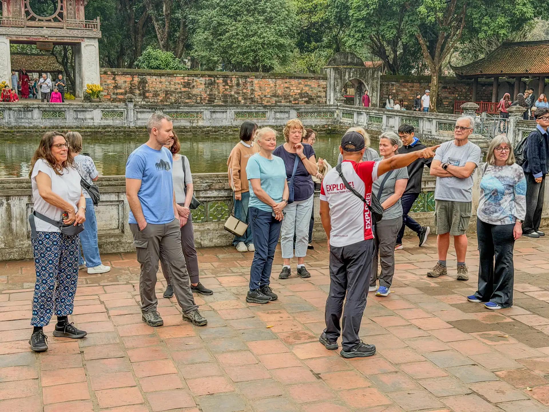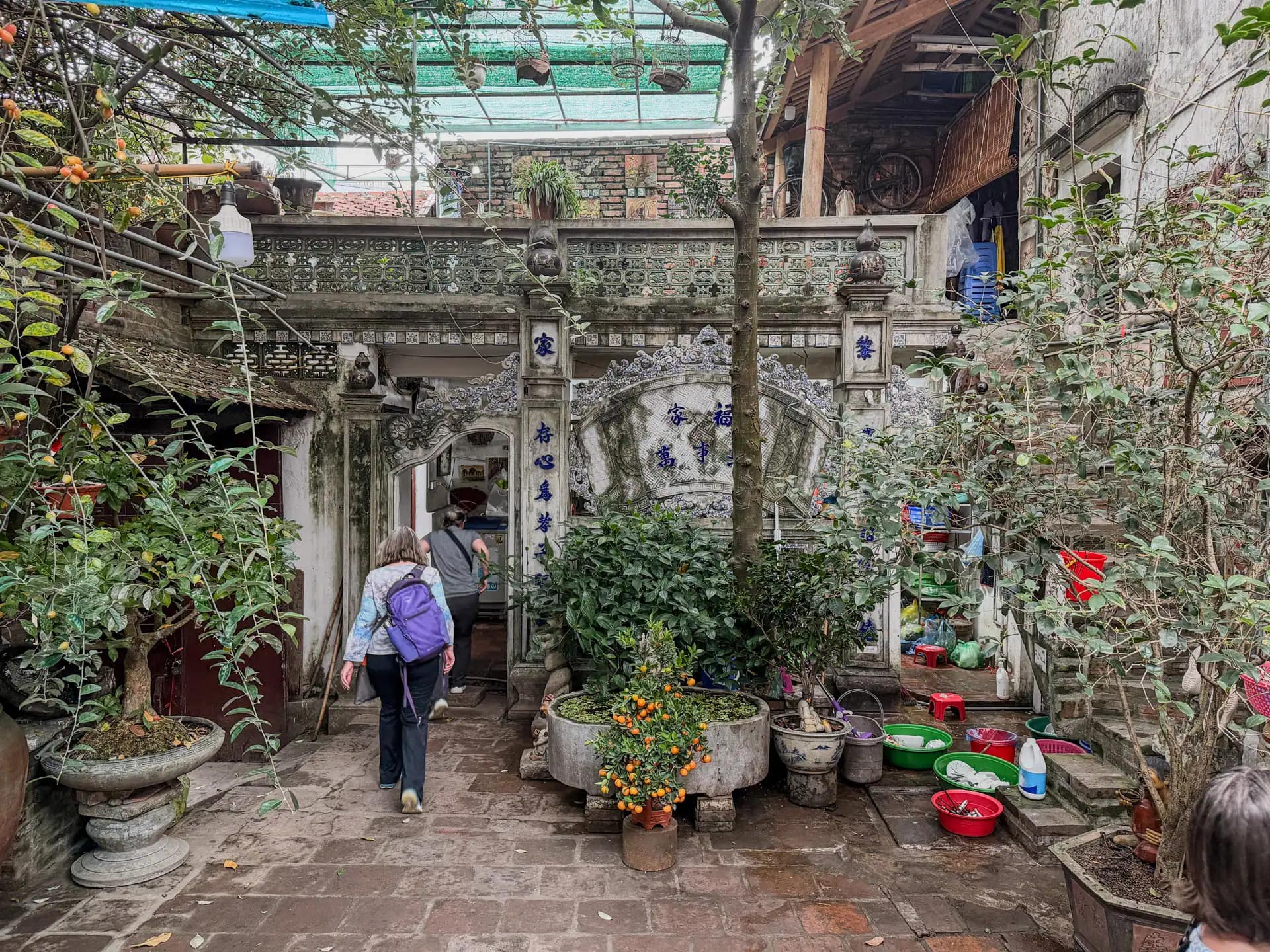 We passed the luxury shopping part of Hanoi, with much less chaotic roads and less traffic. This was followed by beautiful old French colonial buildings en route to our next stop, The Temple of Literature. This location used to be the university for the whole country, initially only for boys. The Khue Van Pavilion(Constellation of Literature Pavilion), pictured below, features on the green 100,000 Dong note.