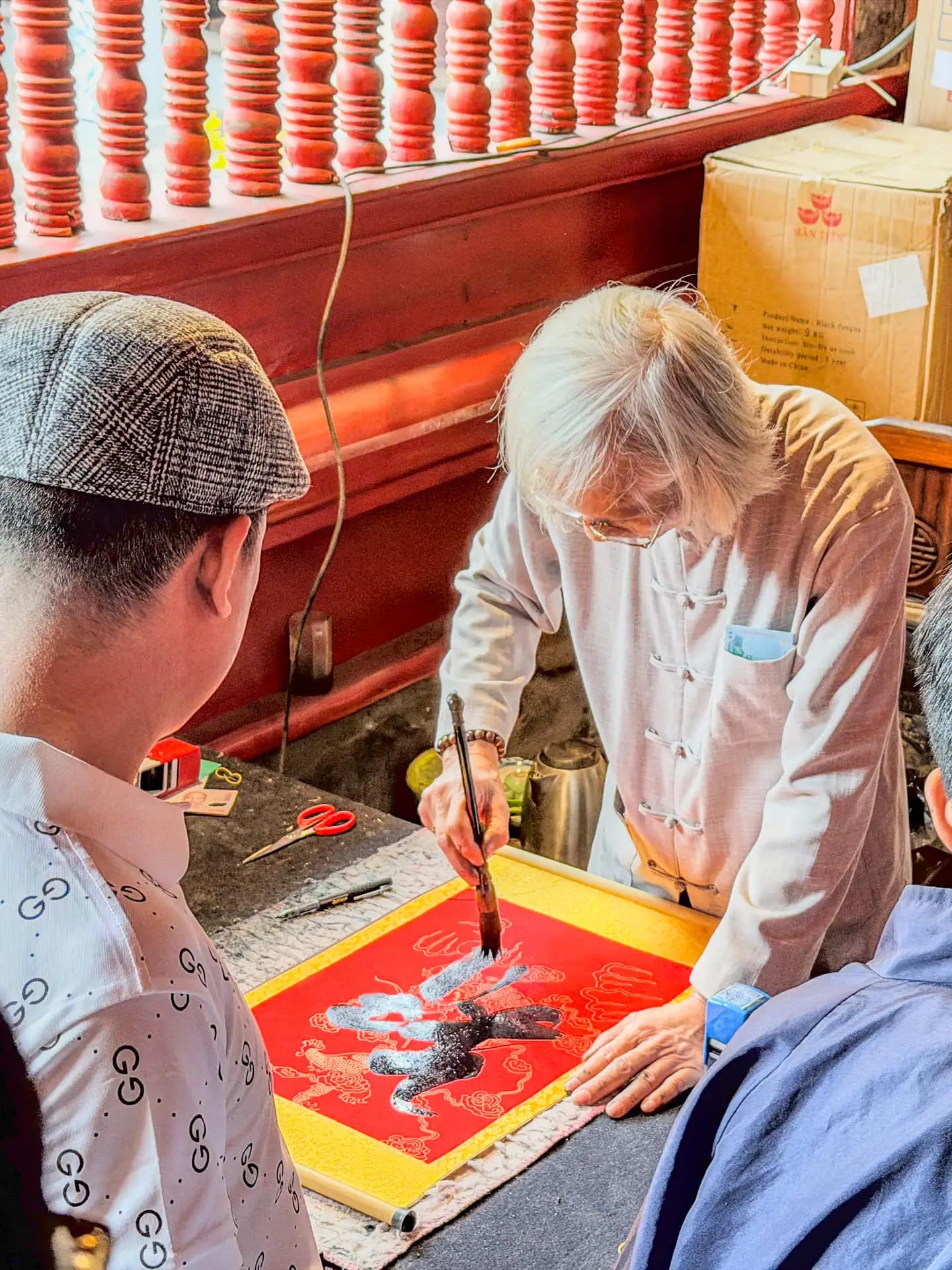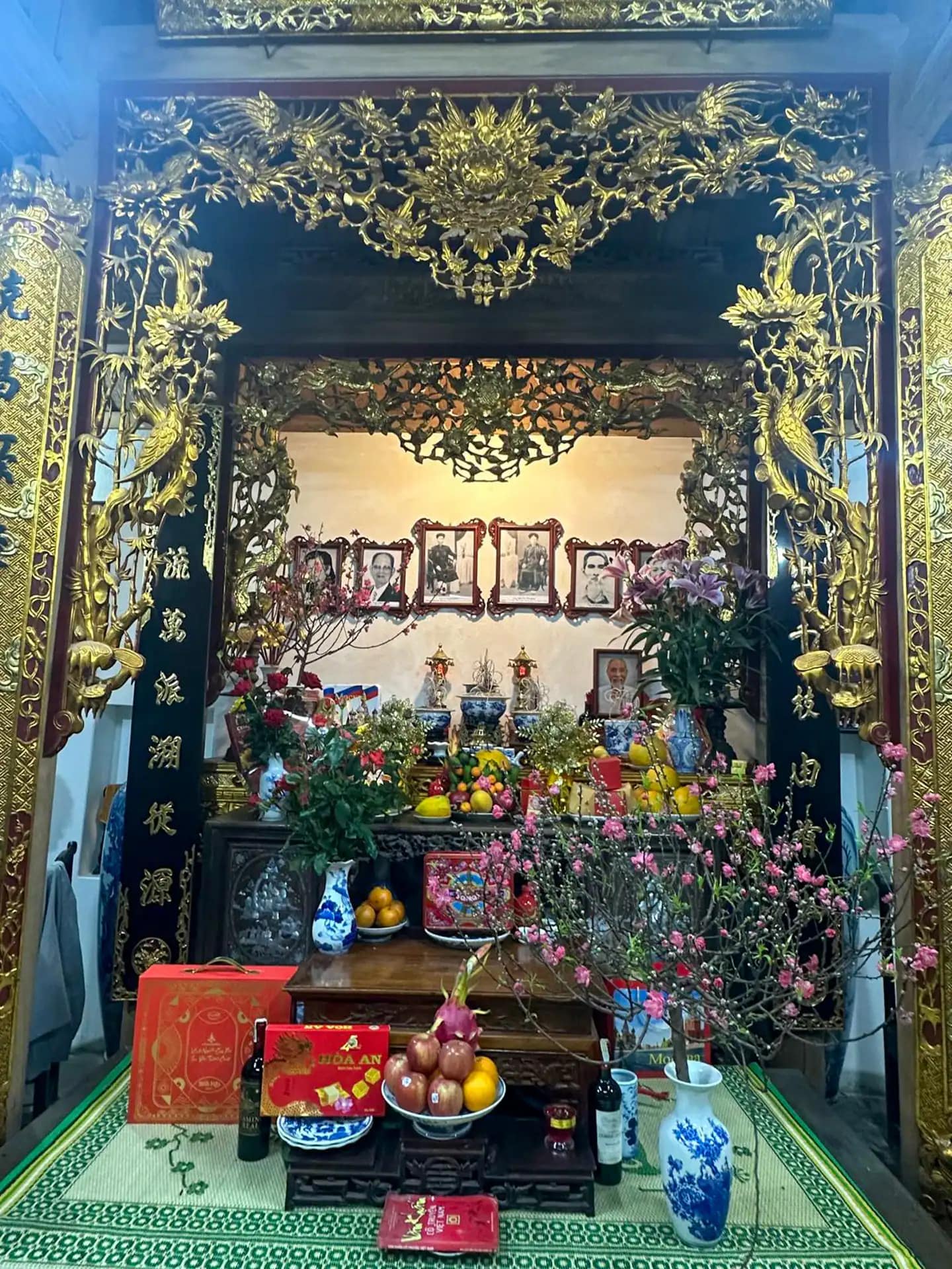 We were then able to have a look around the house. It was 147 years old and had an ornate shrine with photos of their ancestors. In the other rooms there was beautiful woodwork, ceramics, decorated ceilings, many family photos on the walls and traditional paintings. The grandson of the pottery family had designed a lamp for Obama’s visit to the village and we saw a replica of his design.