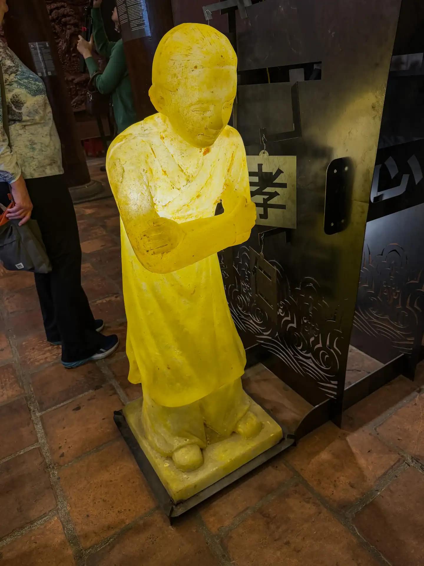 He had the pagoda built to thank the female spirit for promising him a baby boy. It is topped by a shrine with a golden lotus blossom and golden statue of female Buddha, goddess of mercy. It is seen as a place of fertility where people also pray for health, good luck and prosperity.