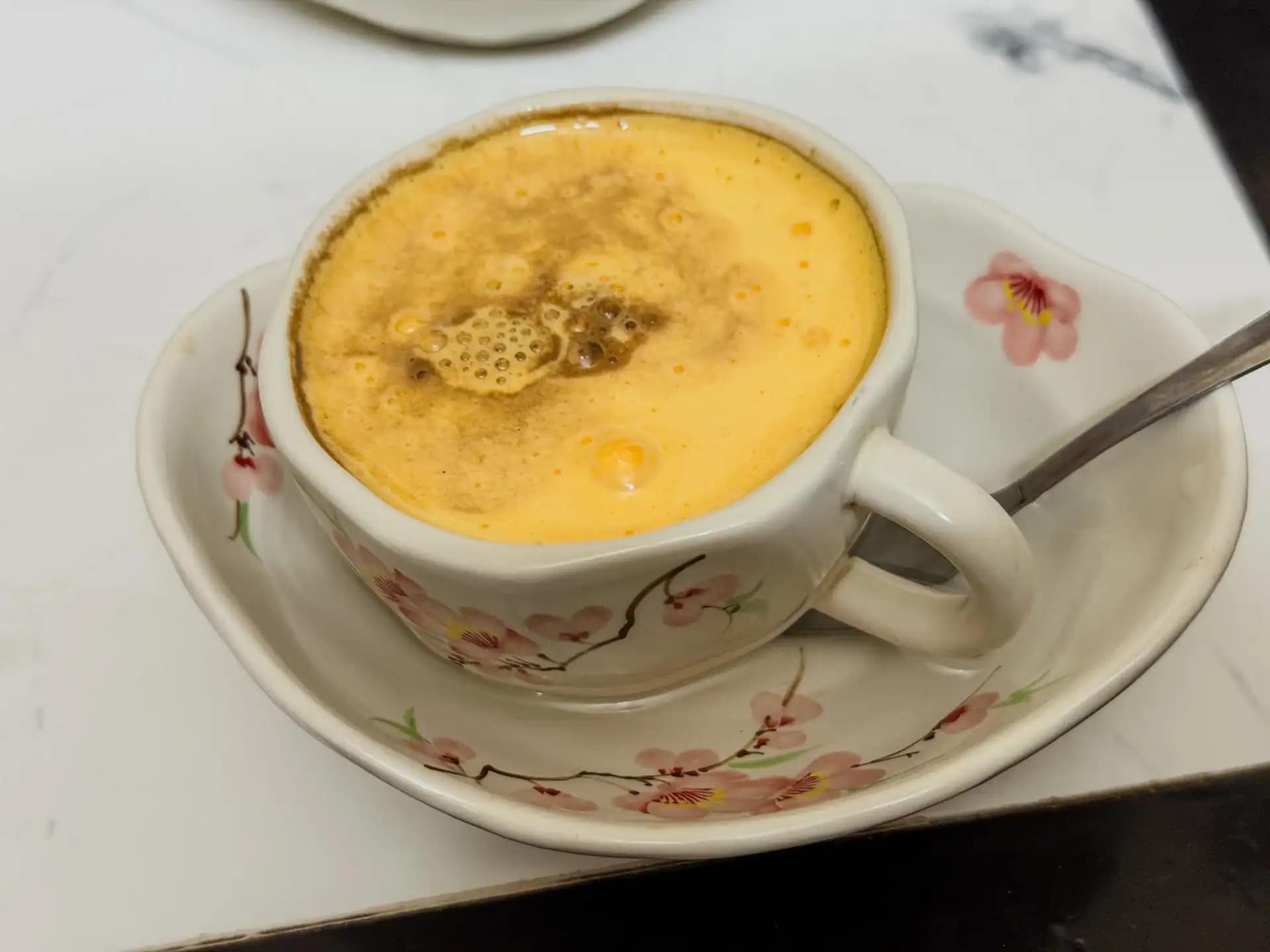 We then tried egg coffee in Café Giảng which has been there since 1946 and which was the original egg coffee business. A local came up with the idea when using egg as a milk substitute. It proved so popular that he was able to open his own business here and it remains to this day. It is like whisked tiramisu! (now there’s an idea!)